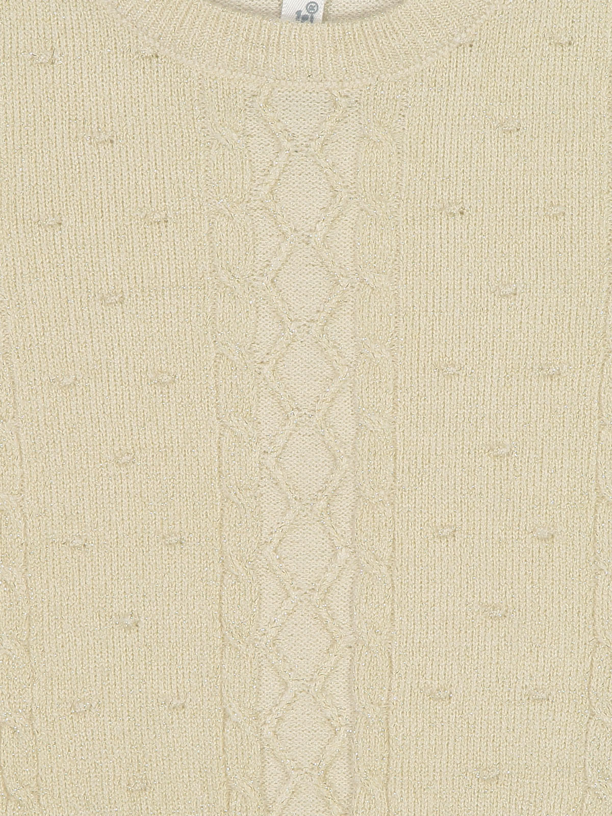 Maglia girocollo in morbido misto cotone con filo lurex, lavorazione a greche e rombi. Pratico da indossare. Un capo caldo e ideale per affrontale l’inverno con stile.