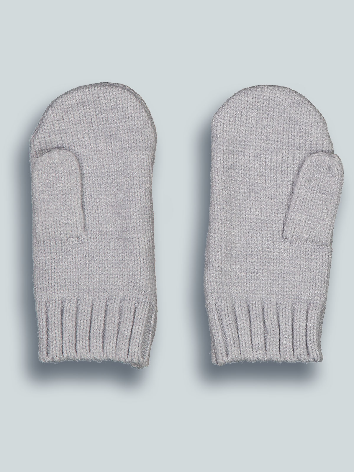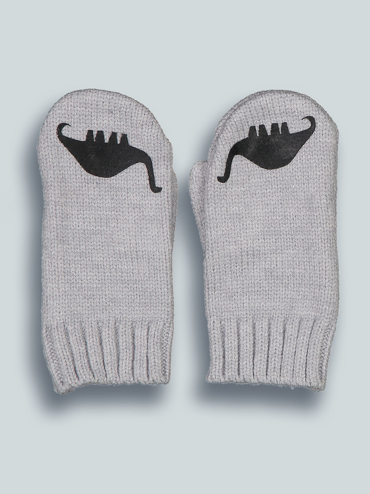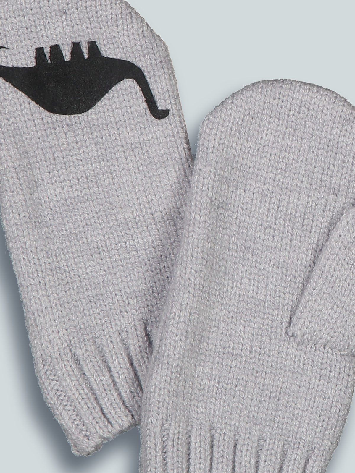Moffole in caldo e morbido tricot melange con dinosauri jacquard sul davanti. Perfette da abbinare alla cuffia e collo coordinati, immancabili nelle fredde giornate d’inverno.