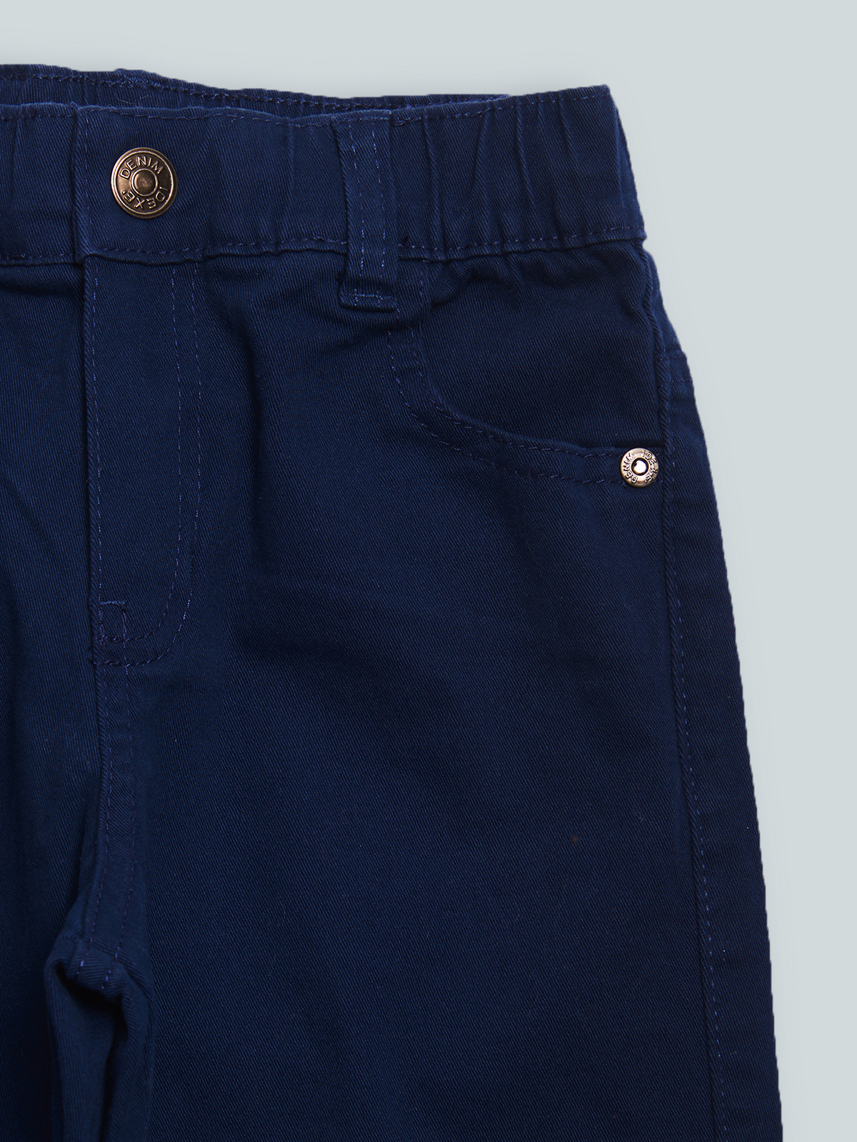 Pantaloni in morbido drill elasticizzato per garantire il massimo comfort e libertà nei movimenti. Vita elasticata aperto davanti con bottone, tasche sul davanti e dietro. Un capo pratico e comodo, da indossare tutti i giorni.