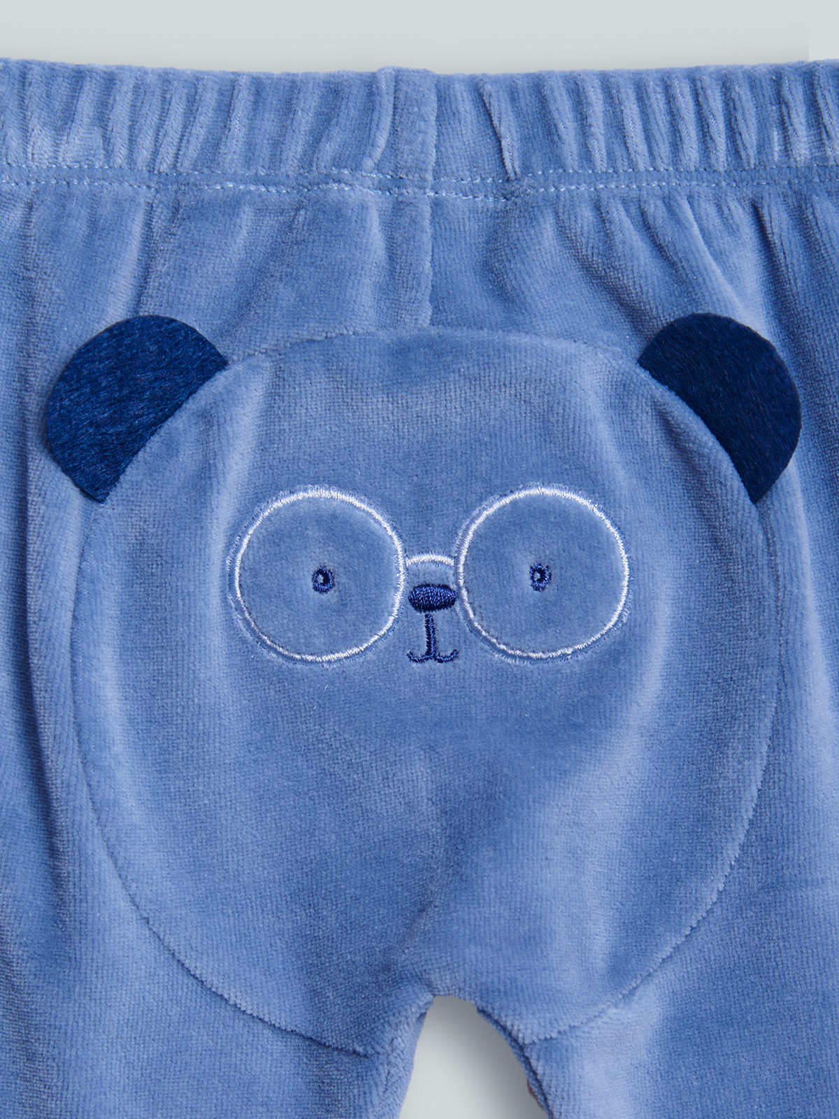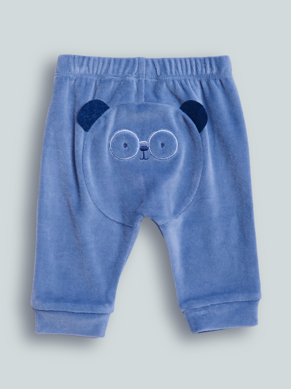 Pantaloni in Morbida ciniglia, vita elasticata con laccio decorativo. Muso di animaletto ricamato con orecchie 3D sul retro. Confortevoli, versatili e spiritosi.
