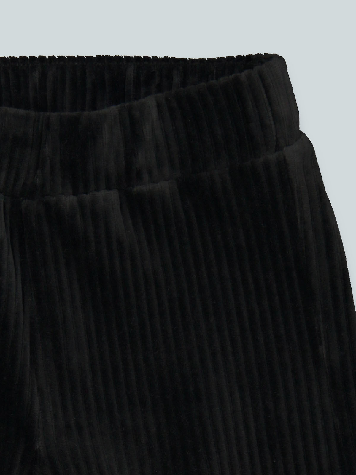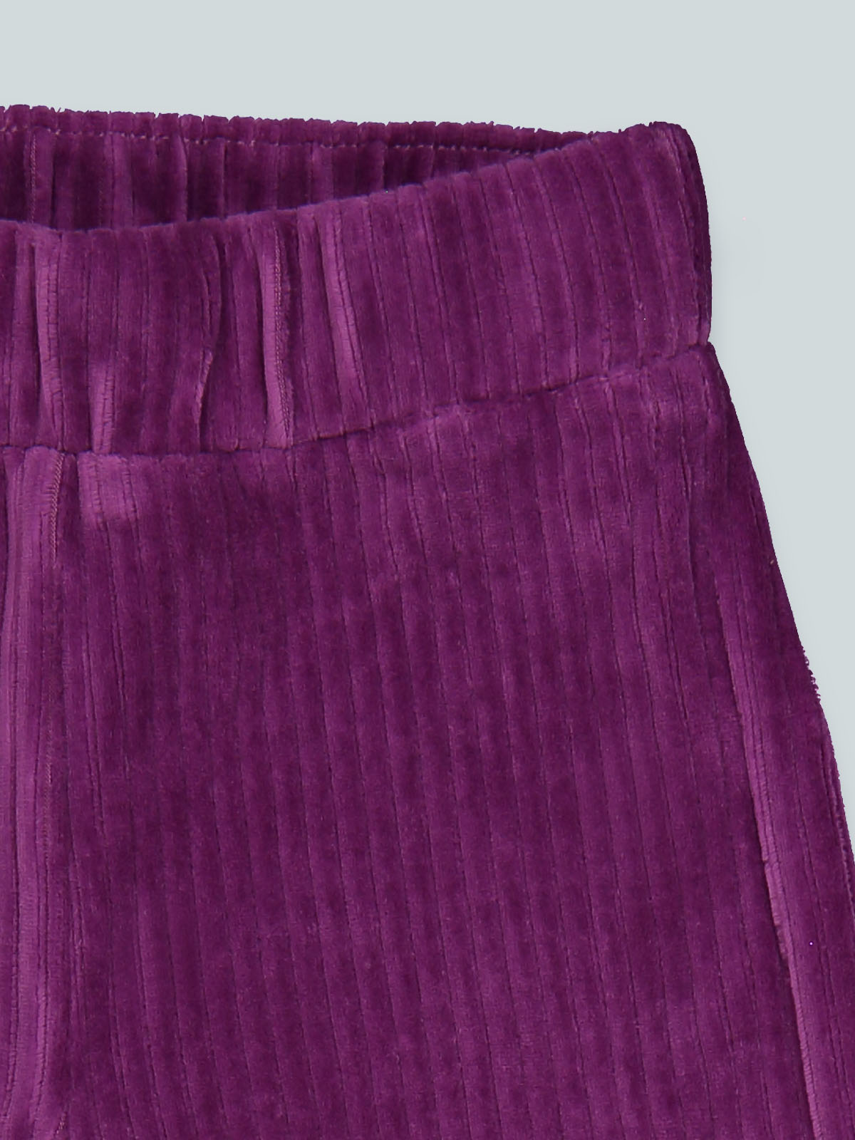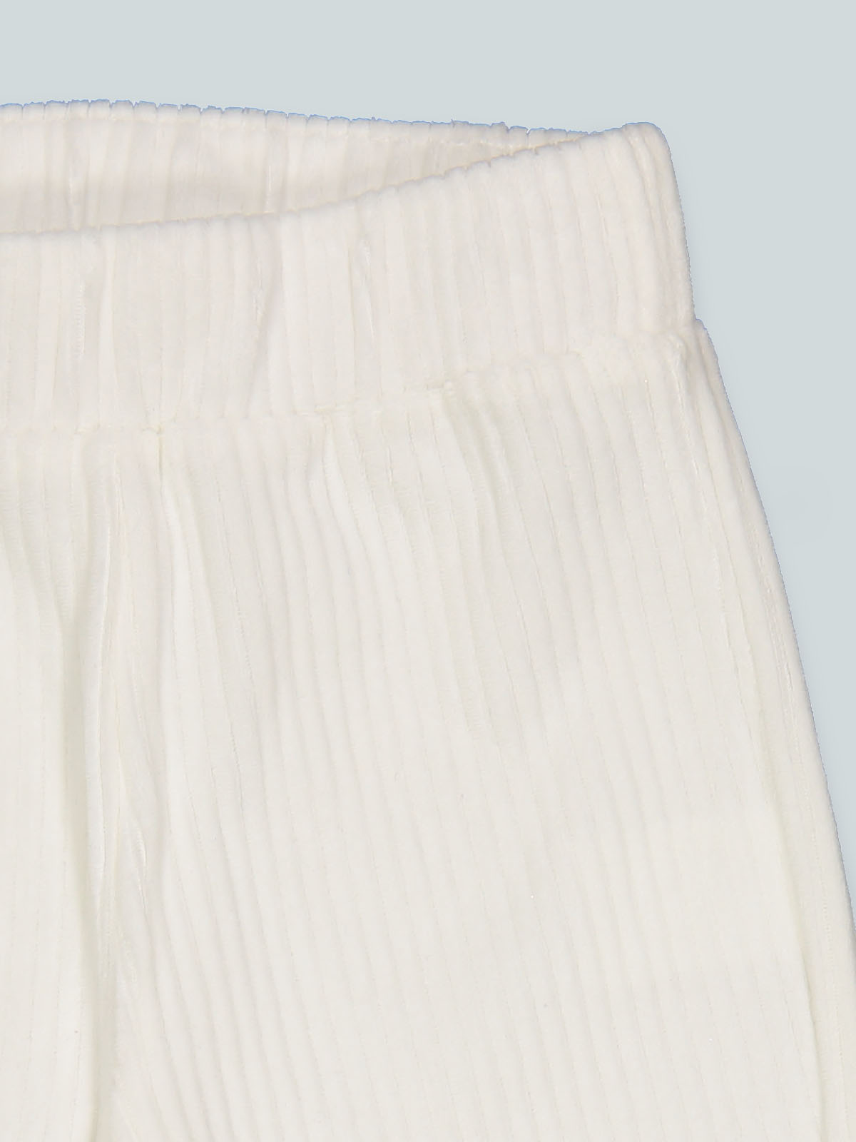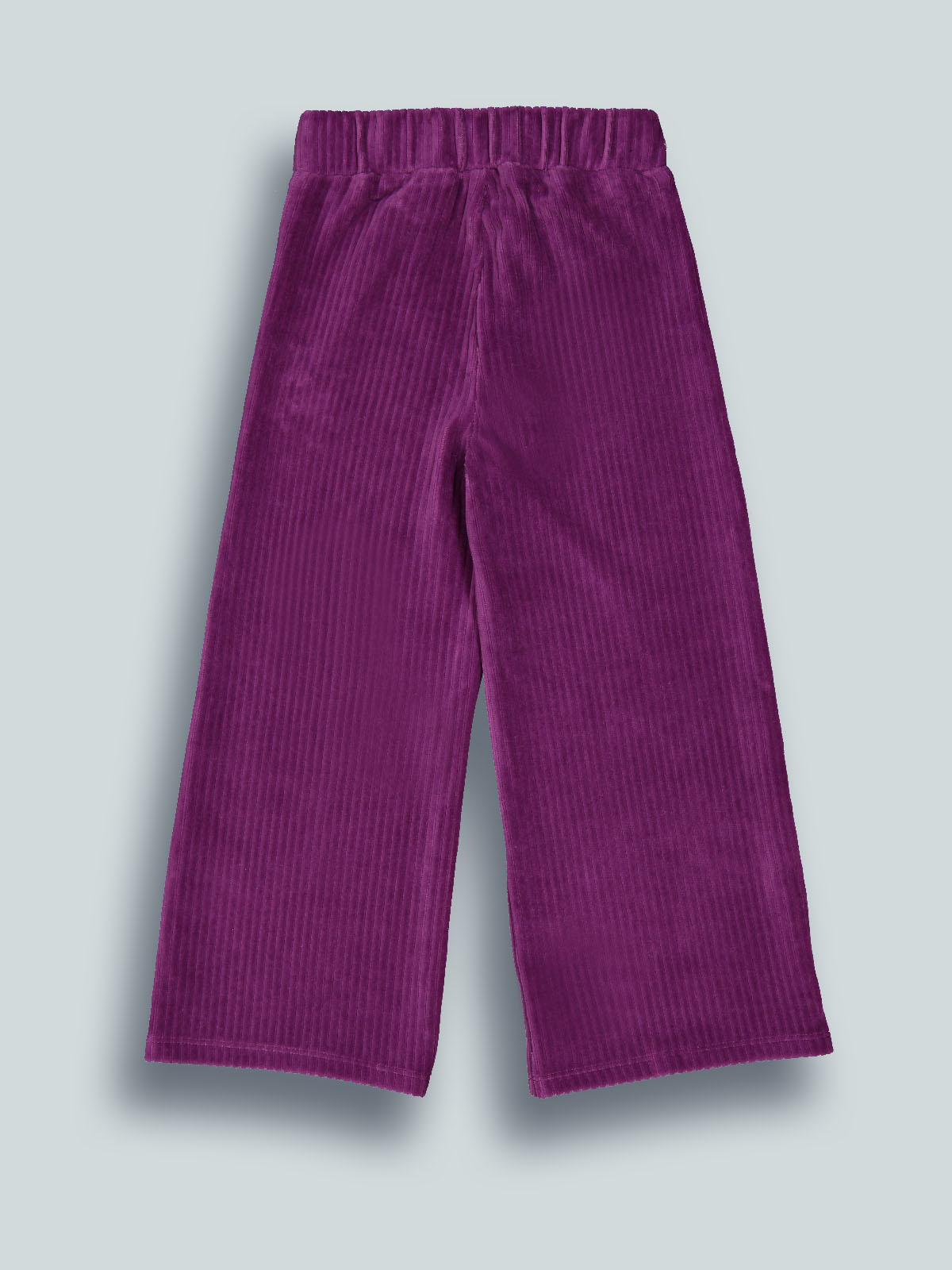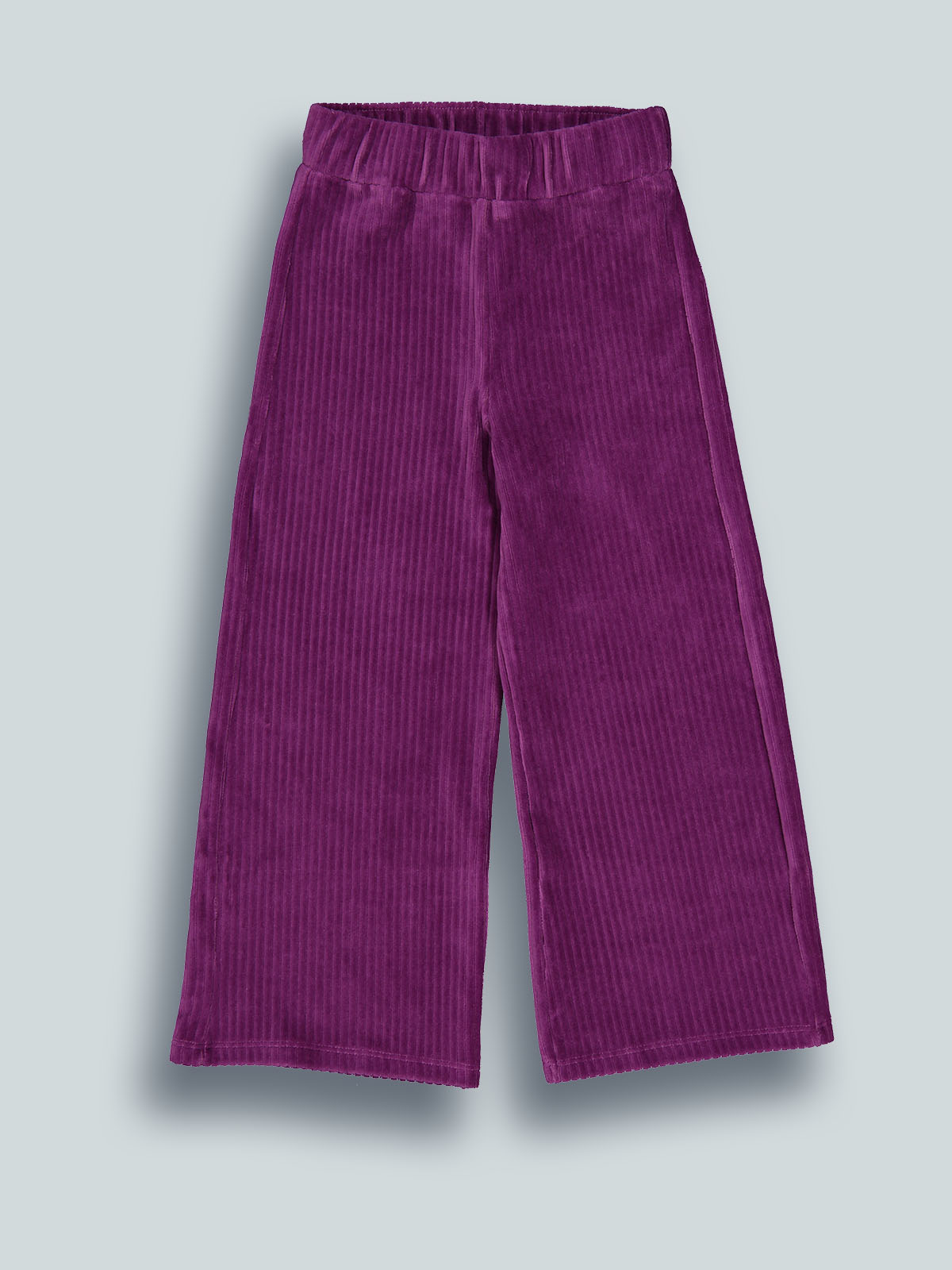 Pantaloni a palazzo in ciniglia a coste. Vita elasticata per maggiore comodità di indosso. Un capo decisamente sfizioso e alla moda.