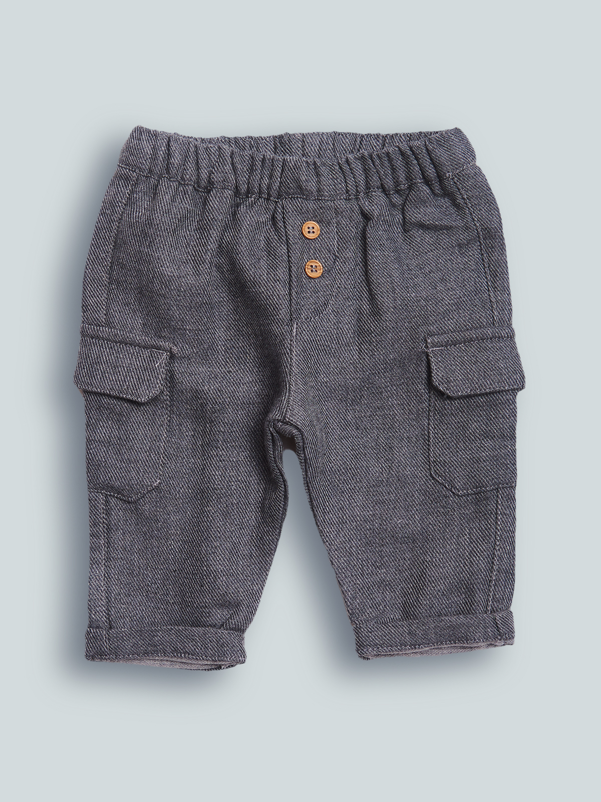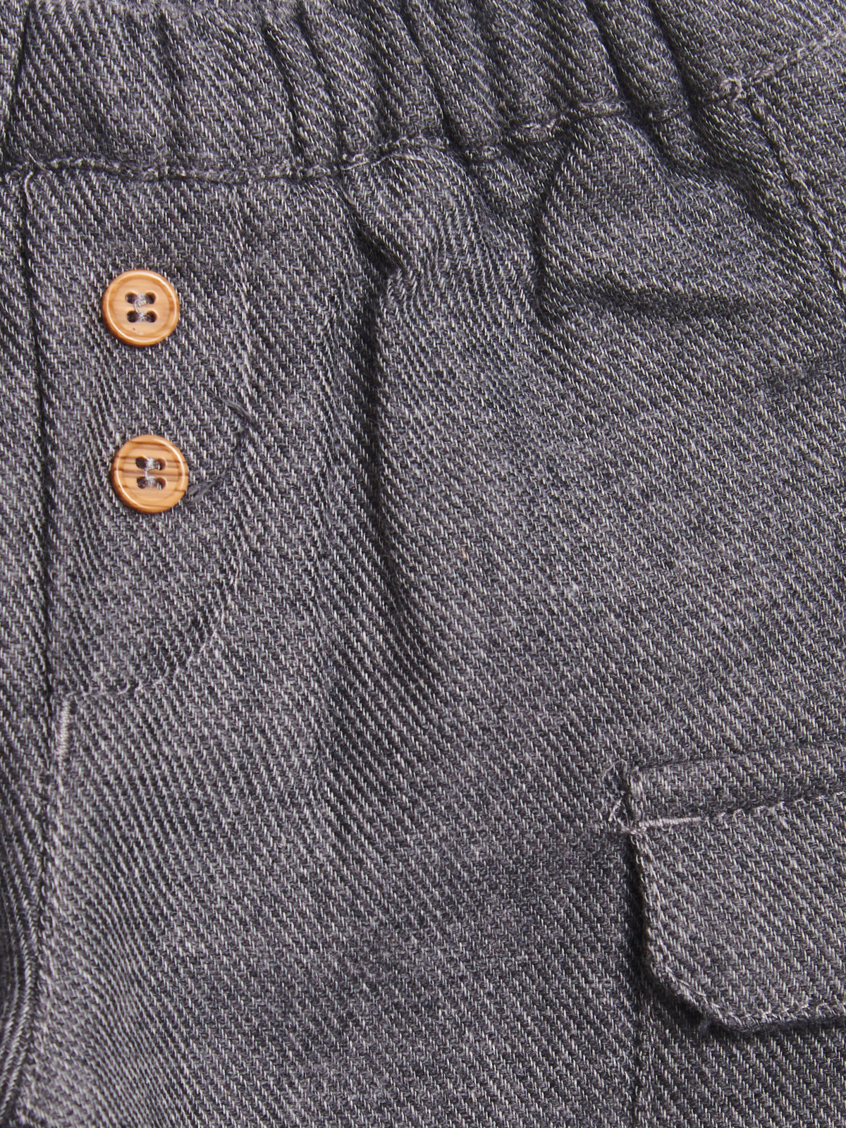 Pantaloni in morbido tessuto laniero. Tasche applicate sul fianco, braghetta con bottoni finto legno. Un capo morbido e caldo facilmente abbinabile, ideale per le giornate più fredde.