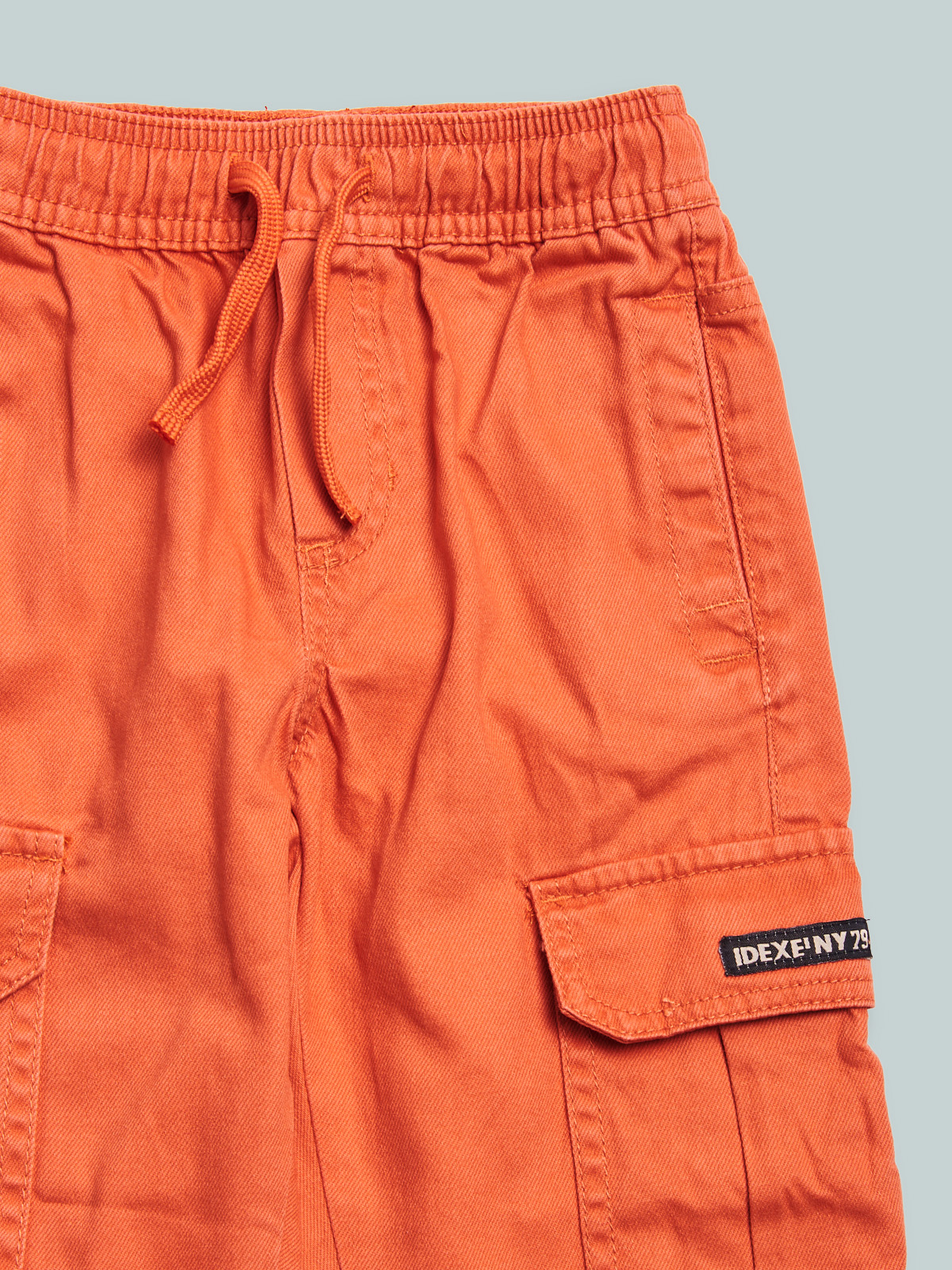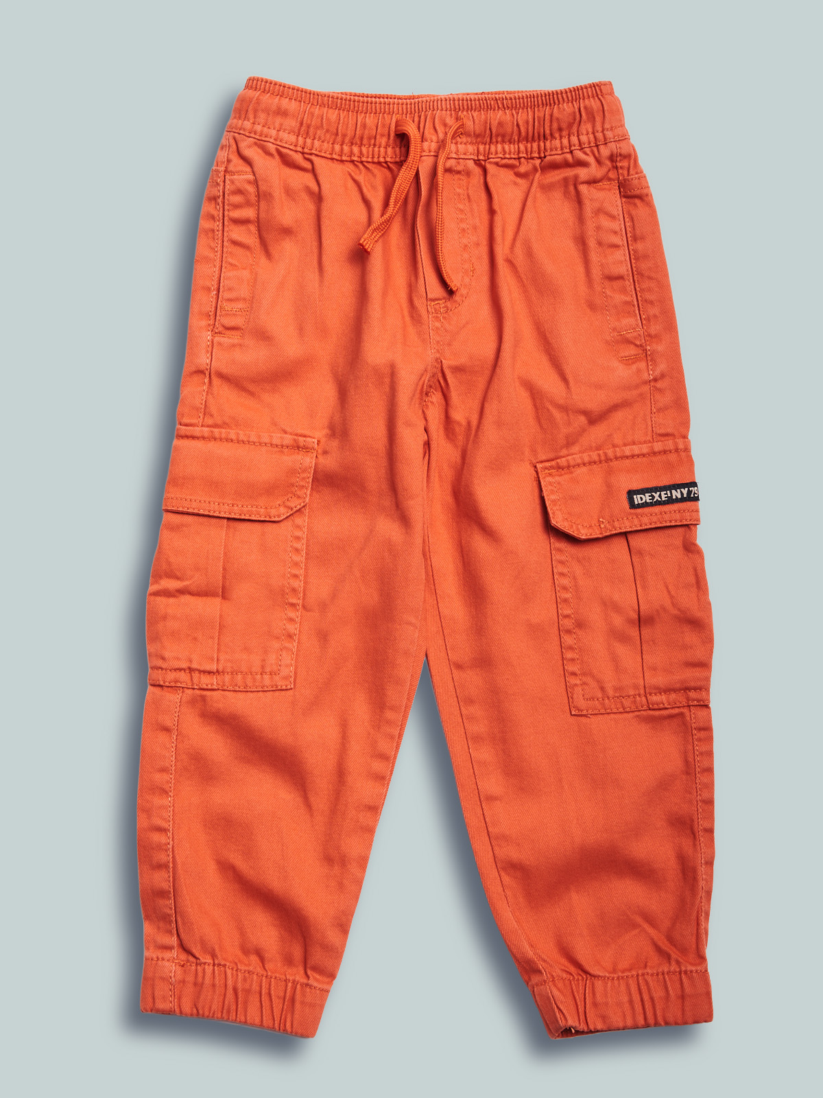 Pantaloni in drill non elasticizzato, modello jogging con vestibilità regular, linea diritta. Vita elasticata e coulisse regolabile, elastico al fondo gambe, tasche davanti e tasconi stile cargo sui fianchi. Un capo colorato ideale pda indossare nella bella stagione.