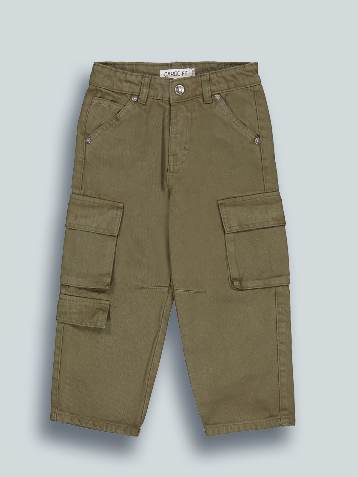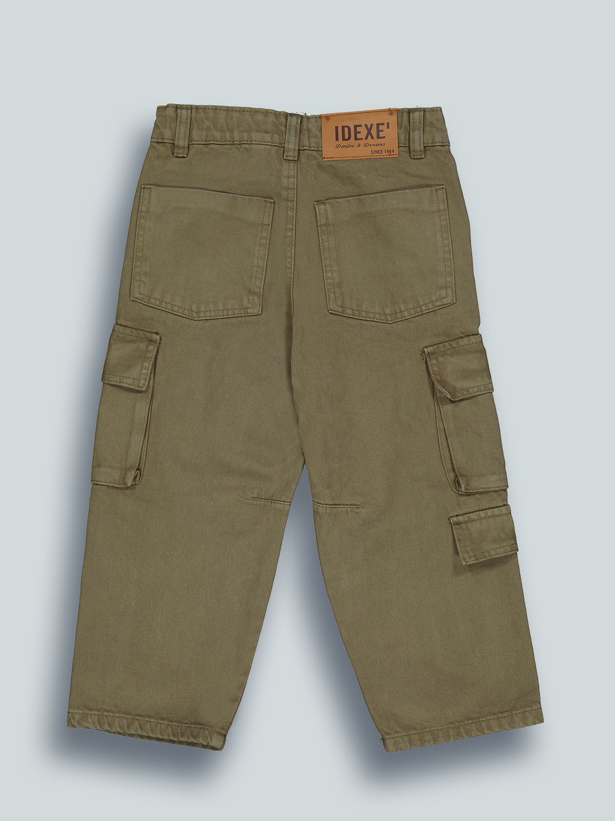 Pantaloni in drill fermo, modello cargo fit, linea ampia e morbida con tasconi laterali. Apertura davanti con zip e bottone, vita interna con elastico regolabile. Tasche davanti e dietro. Un capo che segue la tendenza del momento, non puo’ mancare nell’armadio del vostro bambino!