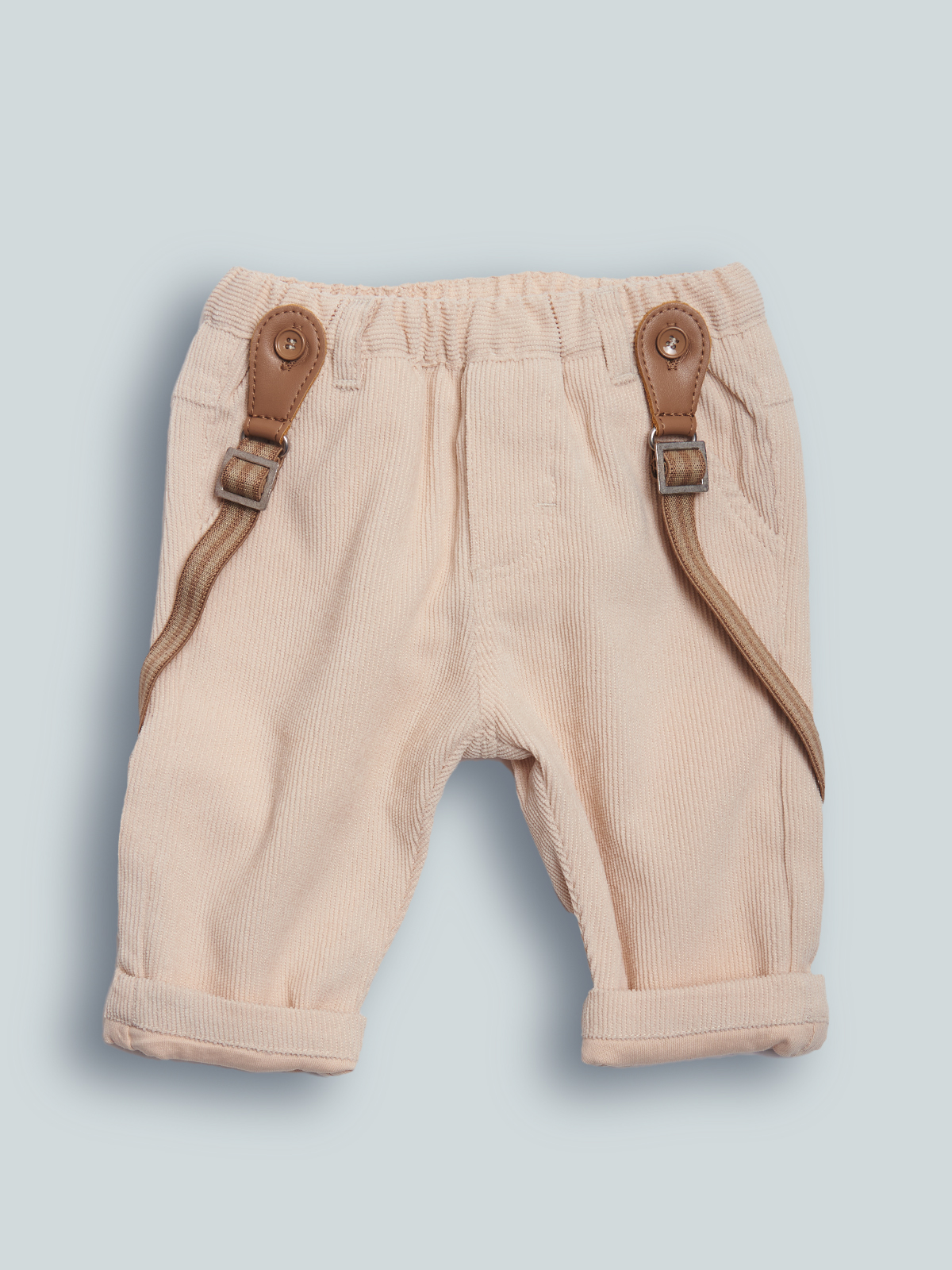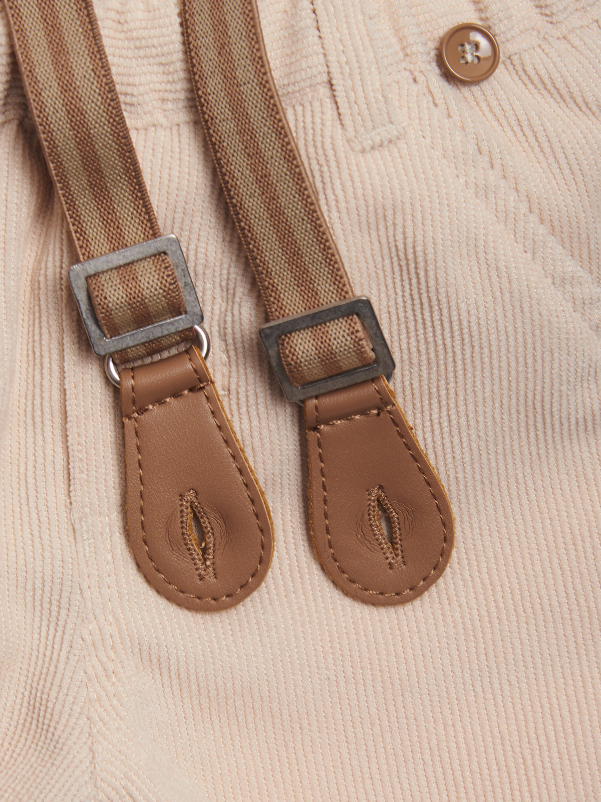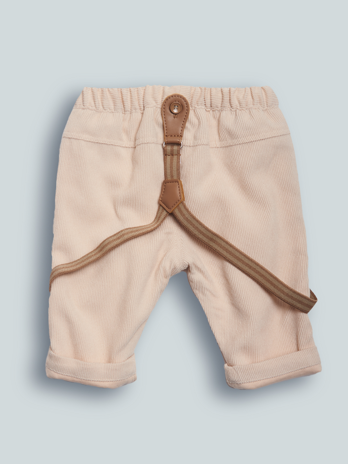 Pantaloni in Morbido velluto foderato in cotone. Vita elasticata con bretelle removibili. Tasche alla francese. Un capo elegante, adatto ad ogni occasione.
