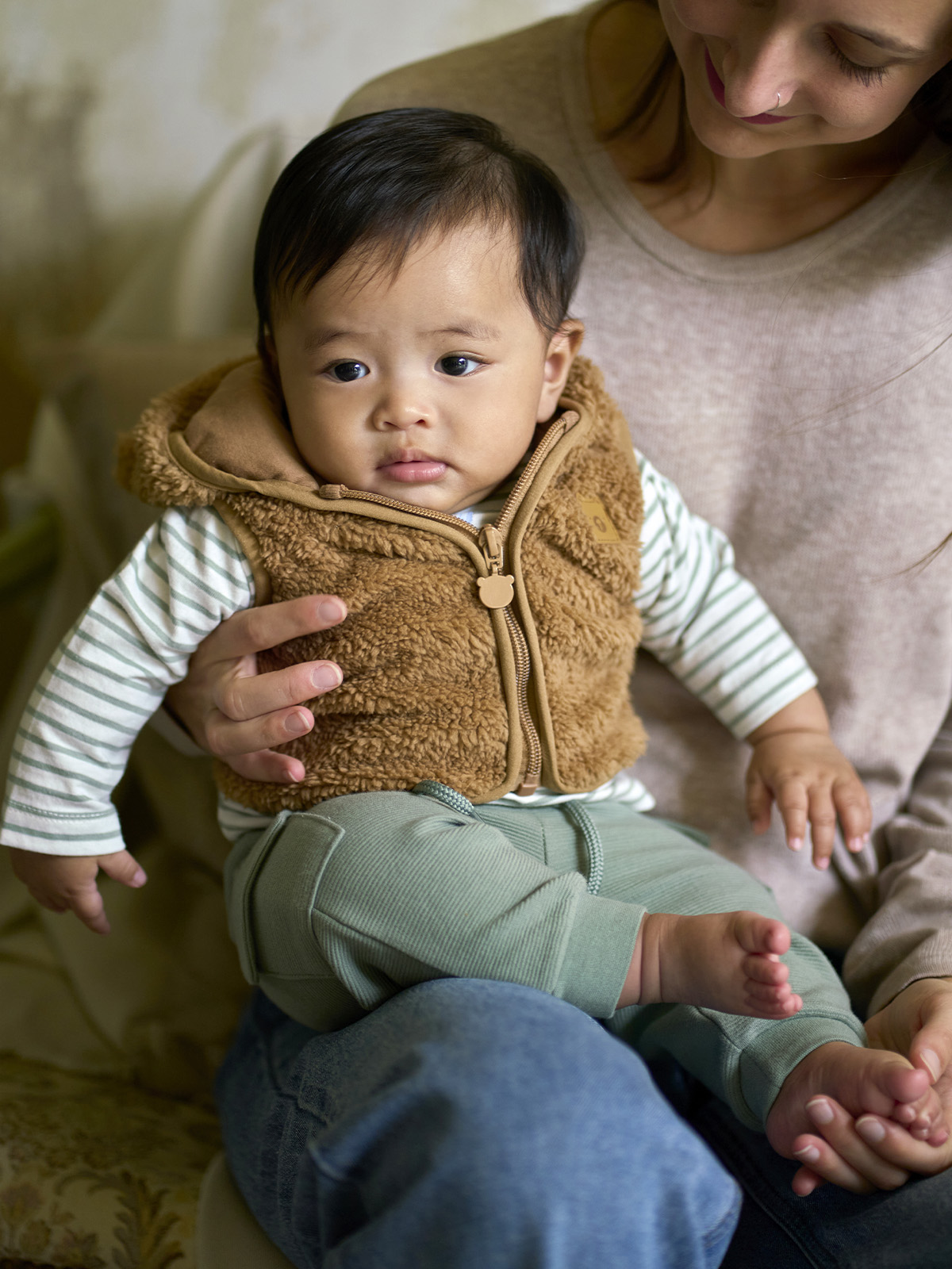 Pantaloni Morbido tubico riga a rilievo, vita elasticata con laccio decorativo. Tasche funzionali sui fianchi. Un capo versatile che può essere abbinato facilmente con il resto della collezione.