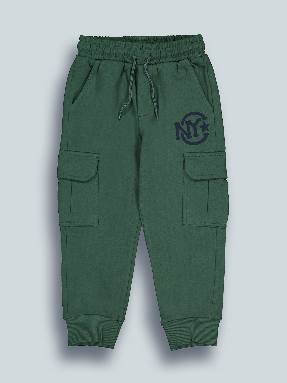 Pantaloni jogging in morbida felpa leggera, modello cargo con tasche davanti e tasconi laterali. Vita elasticata e coulisse regolabile, fondo gambe in costina. Un capo pratico e comodo, da indossare tutti i giorni.