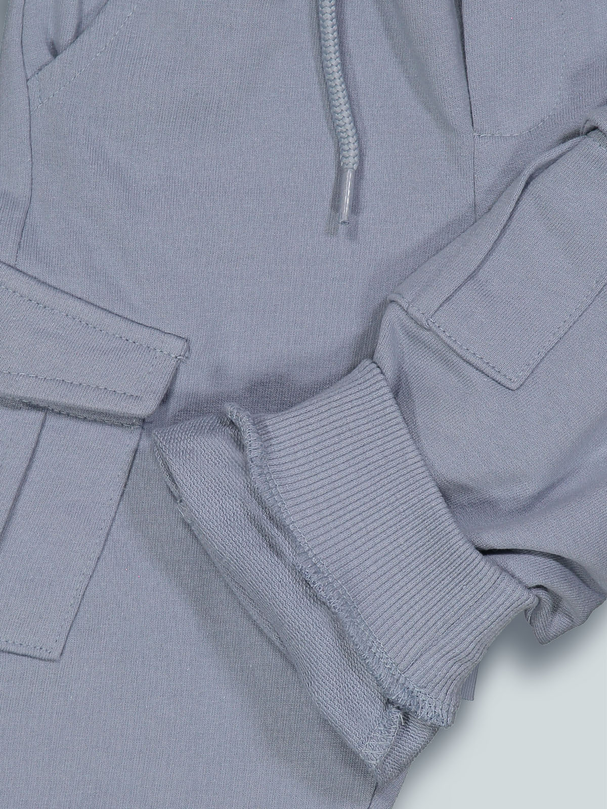 Pantaloni jogging in morbida felpa leggera modello cargo con tasche davanti e tasconi laterali. Vita elasticata e coulisse regolabile, fondo gambe con morbida costina. Un capo pratico e comodo, da indossare tutti i giorni.