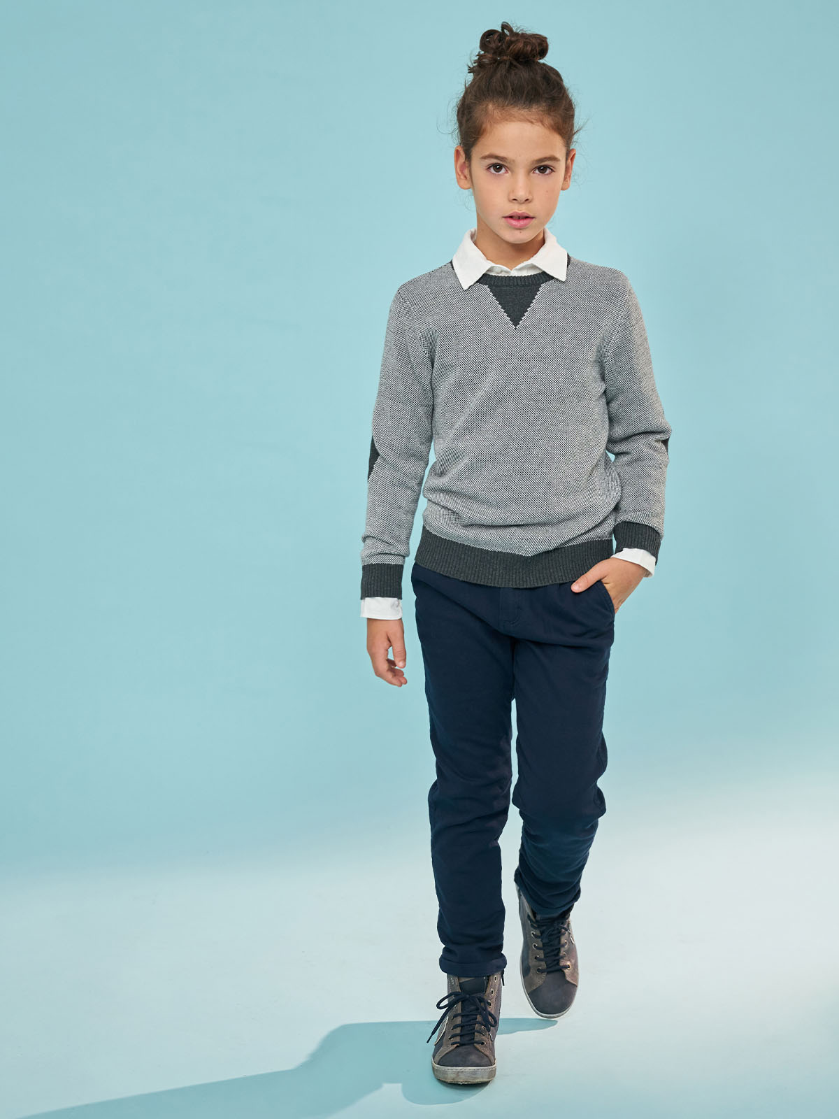 Pantaloni in morbido tessuto elasticizzato che ha il comfort di una felpa ma l’aspetto di un drill. Modello chinos, linea asciutta, vita elasticata aperto davanti con lampo e bottone, tasche sul davanti e dietro. Un capo molto comodo e pratico da indossare tutti i giorni.