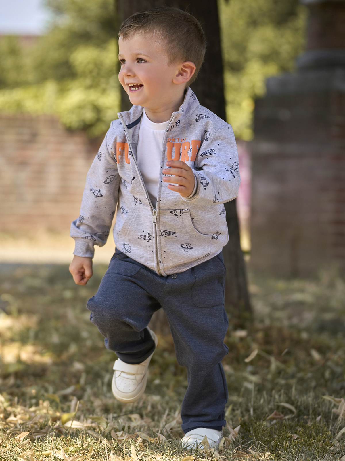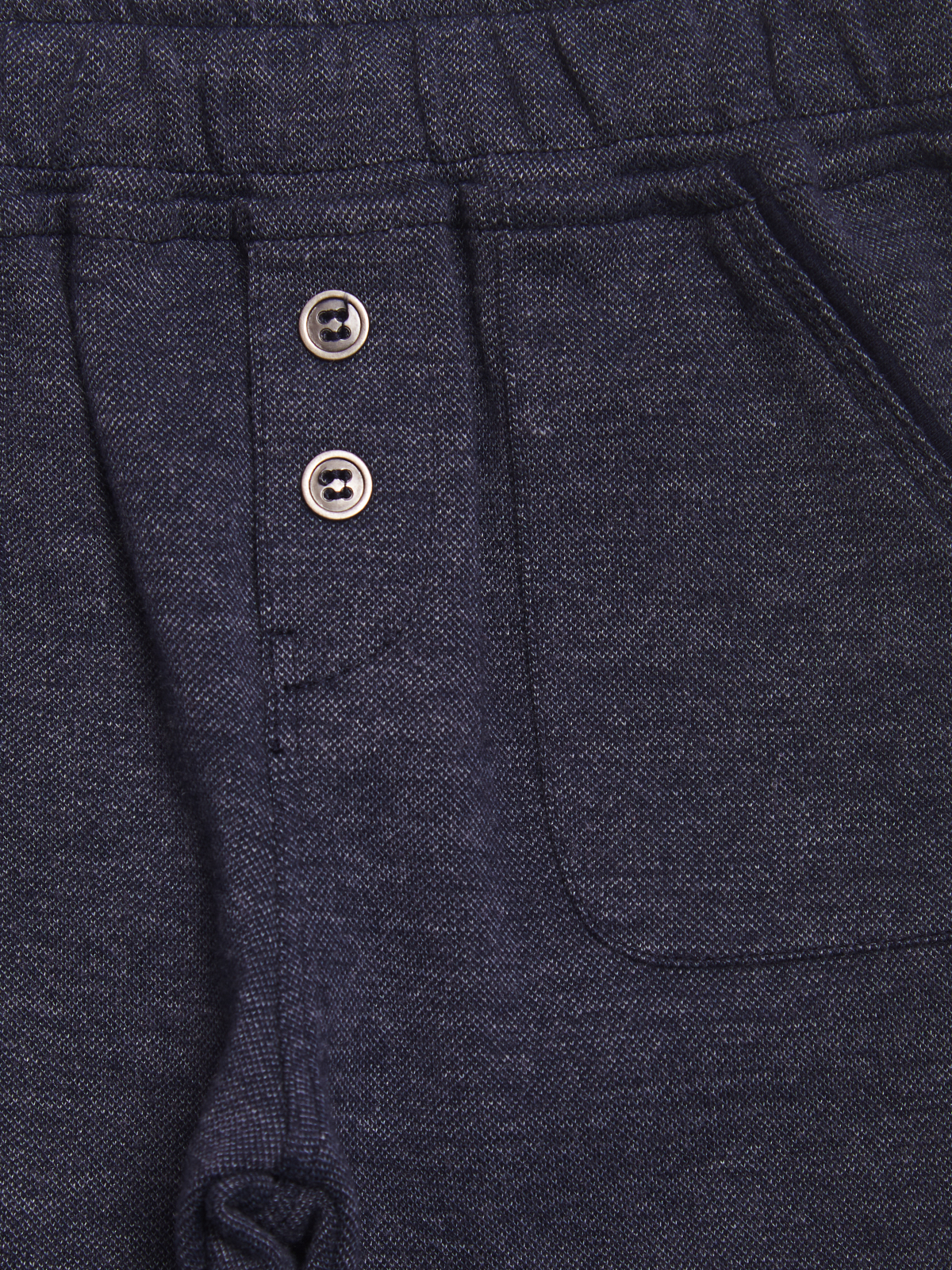 Pantaloni in tessuto Maglia elasticizzato, Modello con vita elasticata, pratiche tasche davanti, bottoncini decorativi sulla braghetta. Un capo pratico e comodo per giocare in libertà.