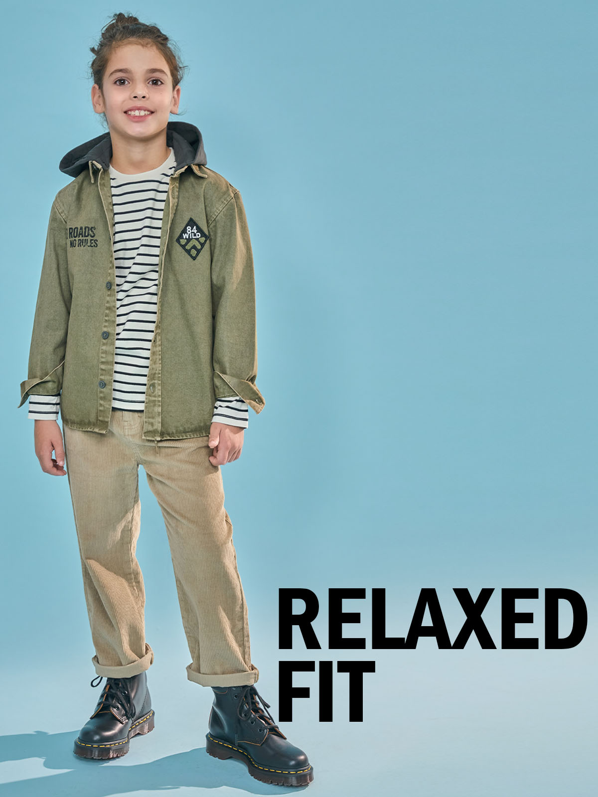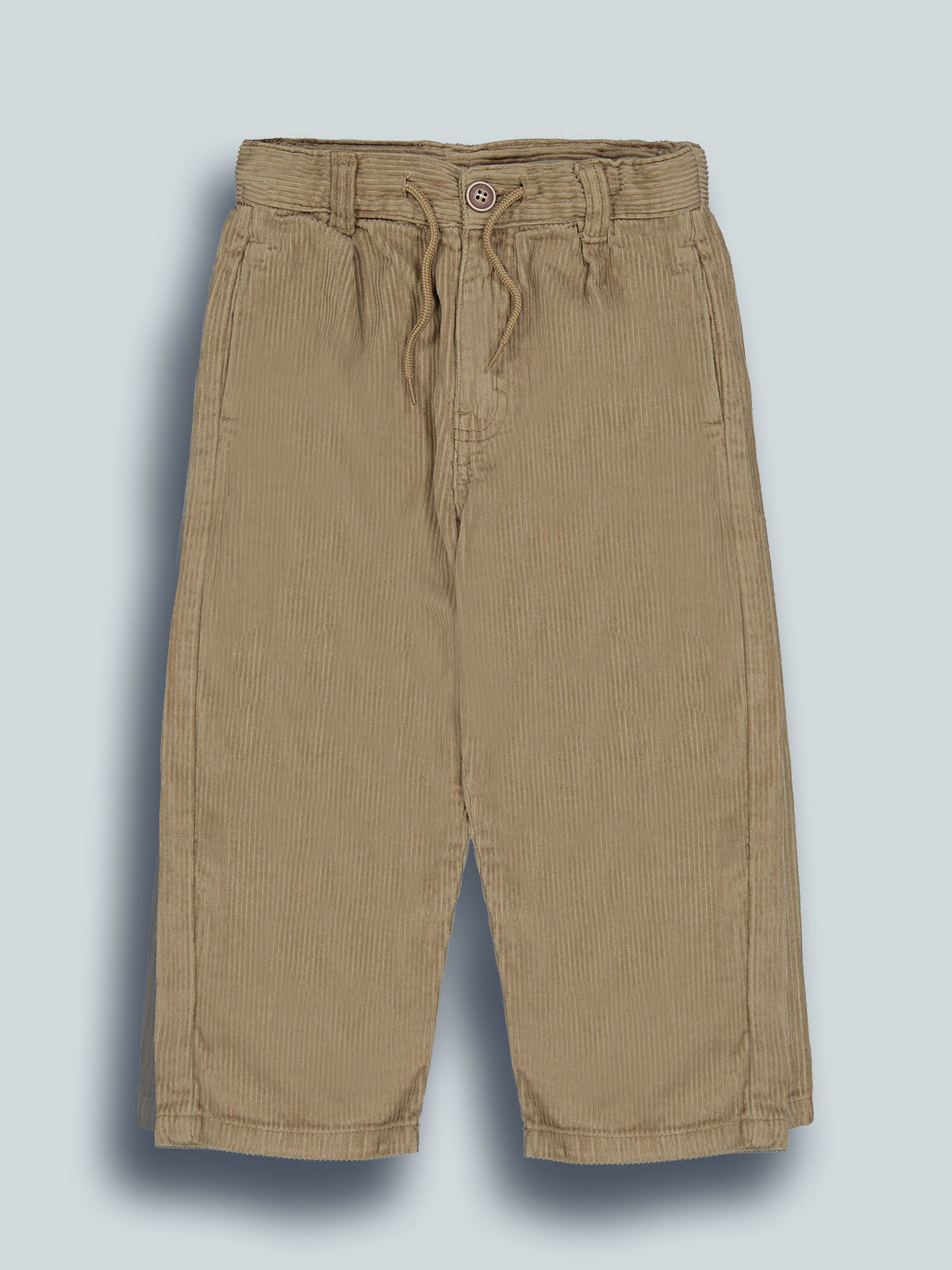 Pantaloni in velluto a coste larghe, modello dalla linea ampia e morbida, aperto davanti con lampo e bottone. Vita con elastico regolabile all’interno e coulisse regolabile, tasche davanti e sul retro. Il capo ideale per un look “dandy”.