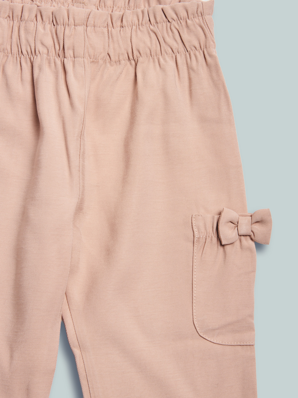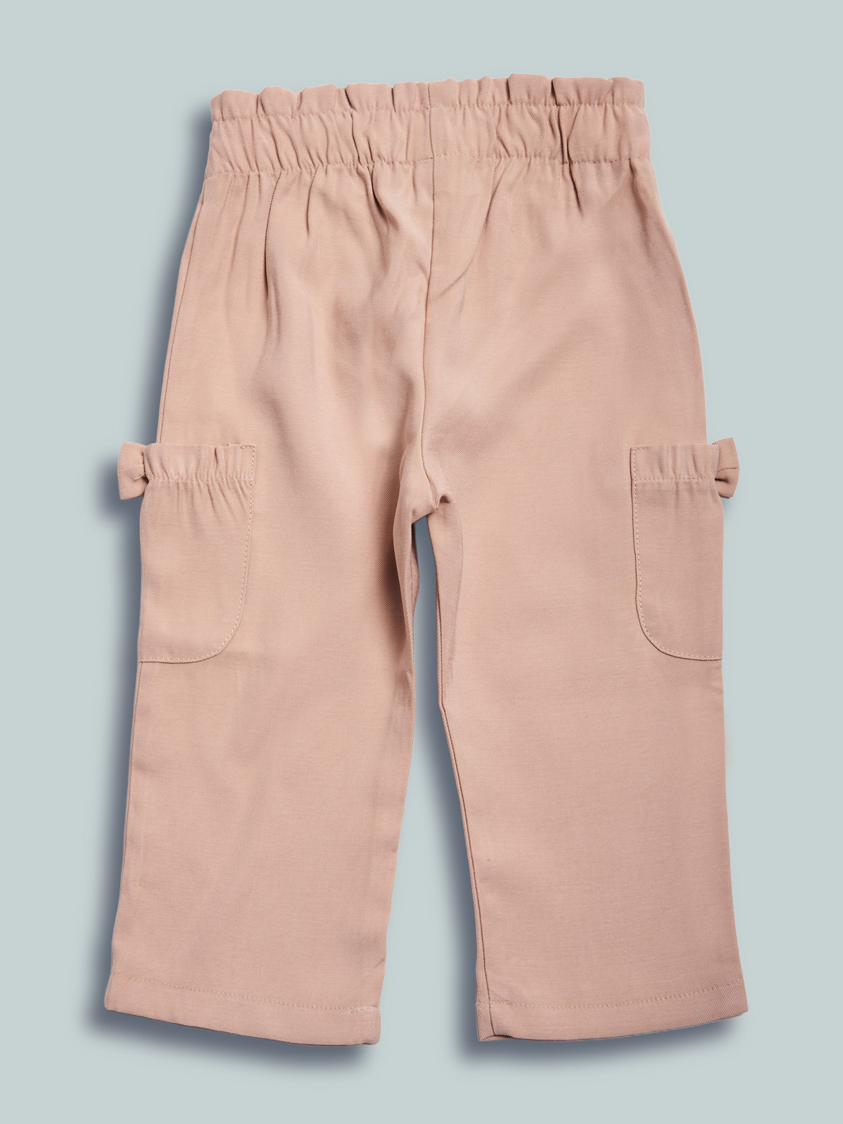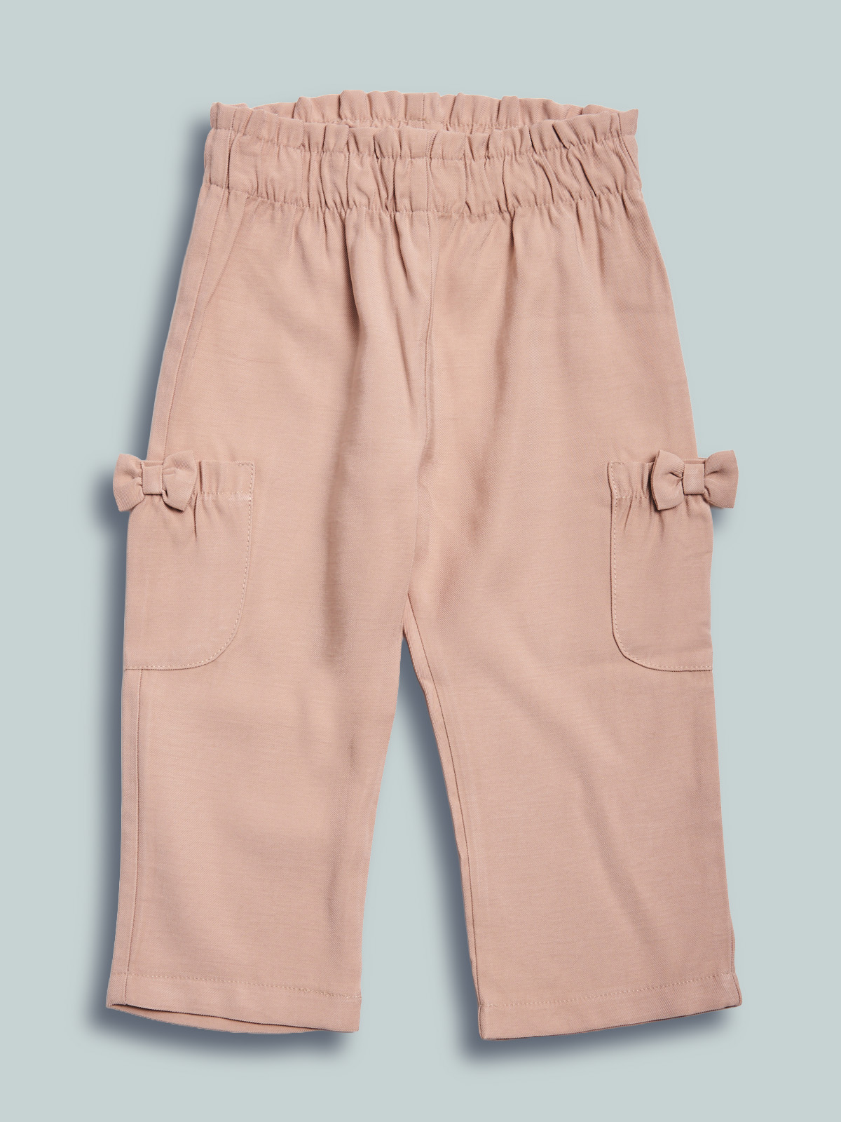 Pantaloni in tessuto viscosa con vita elasticata per maggiore comodità. I fiocchi e le tasche donano un tocco di femminilità. Un capo sfizioso e molto pratico al tempo stesso.