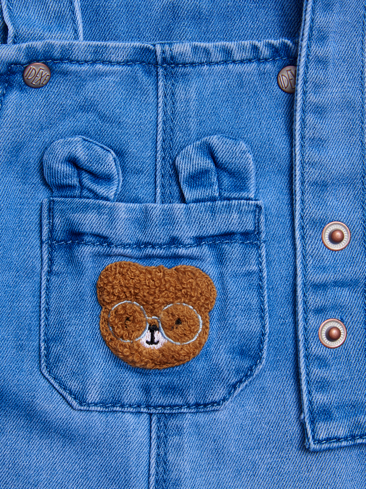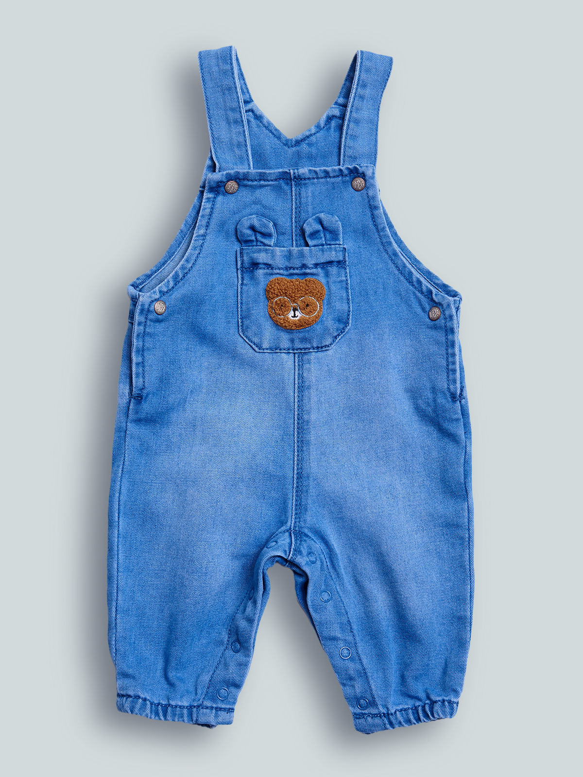 Salopette lunga in Morbido denim. Comode bretelle regolabili con bottoni a pressione, tasca applicata sulla pettorina con ricamo effetto spugna. Confortevole e trendy, perfetta da indossare sopra una t-shirt.