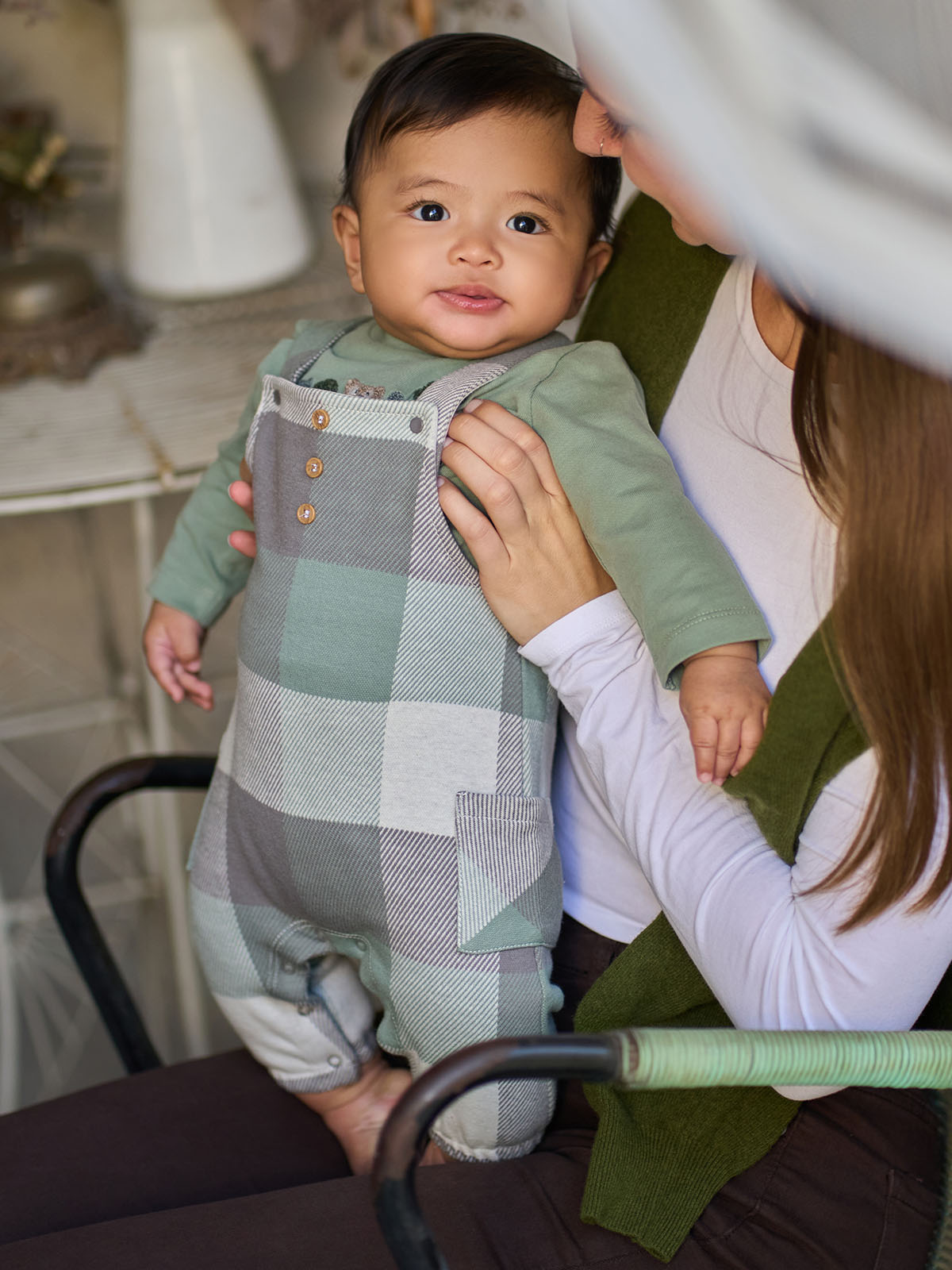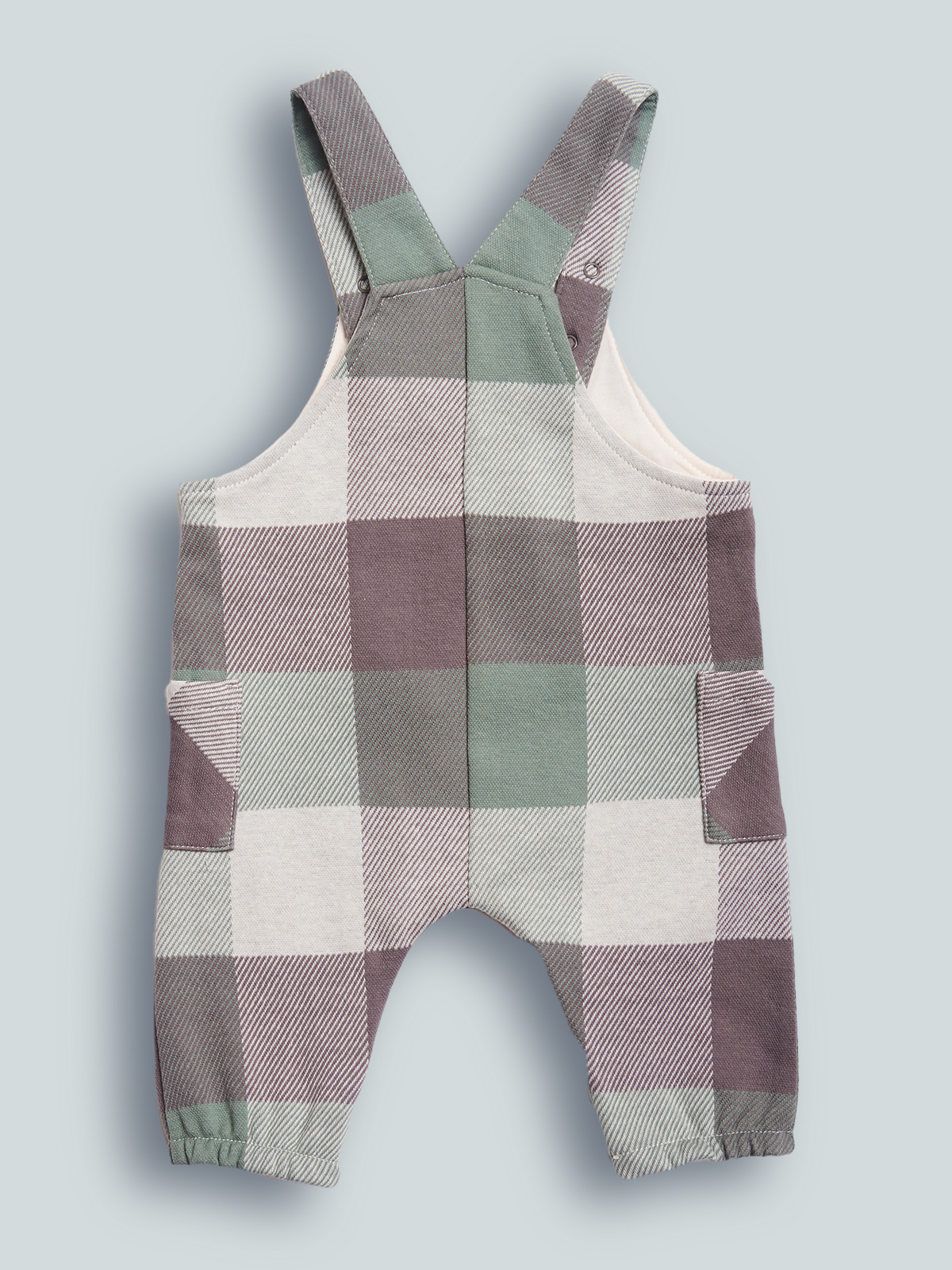 Salopette in maglia jaquard scozzese. Le bretelle sono regolabili, mediante due bottoni a pressione, apertura entrogamba. Un capo pratico ideale per il tempo libero.