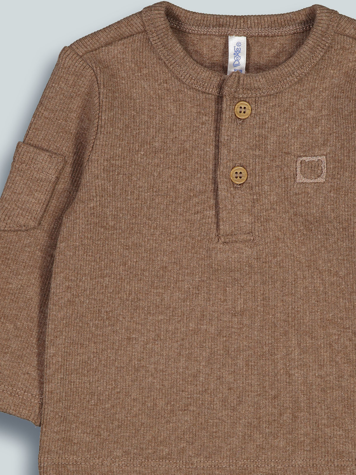 Serafino in morbida costina marrone melange, pratica apertura davanti con bottoni finto legno. Un capo versatile che può essere abbinato facilmente con il resto della collezione.