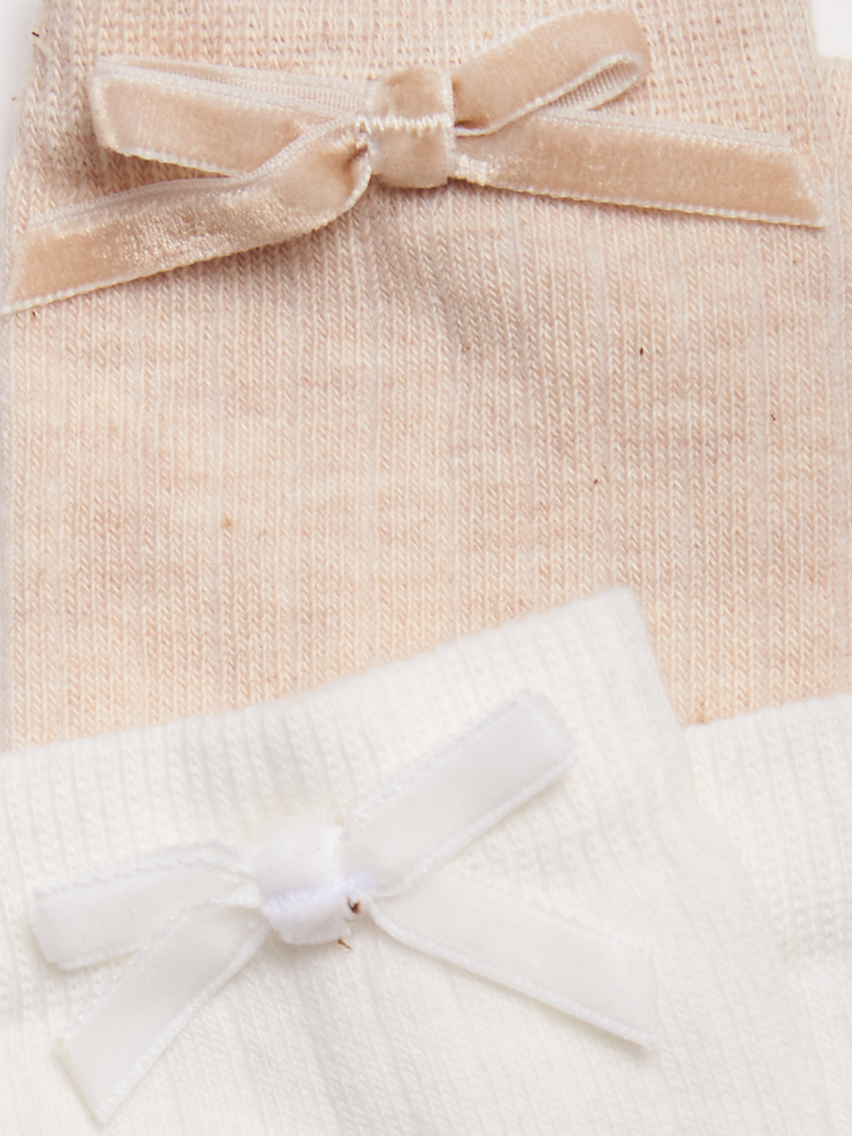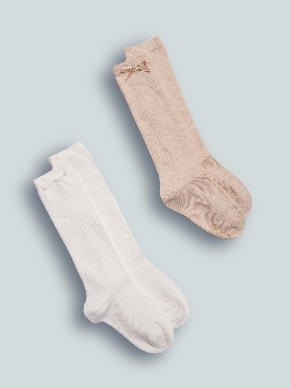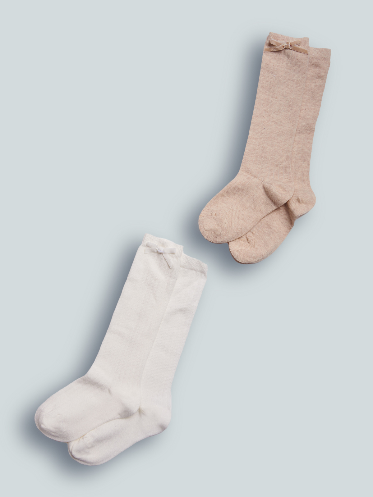Set due paia di calzini lunghezza sotto ginocchio in Maglia Misto cotone Melange e unito lavorazione costina con fiocco sul lato esterno. Ideali da indossare con le gonne e gli abiti della collezione per la loro lunghezza.