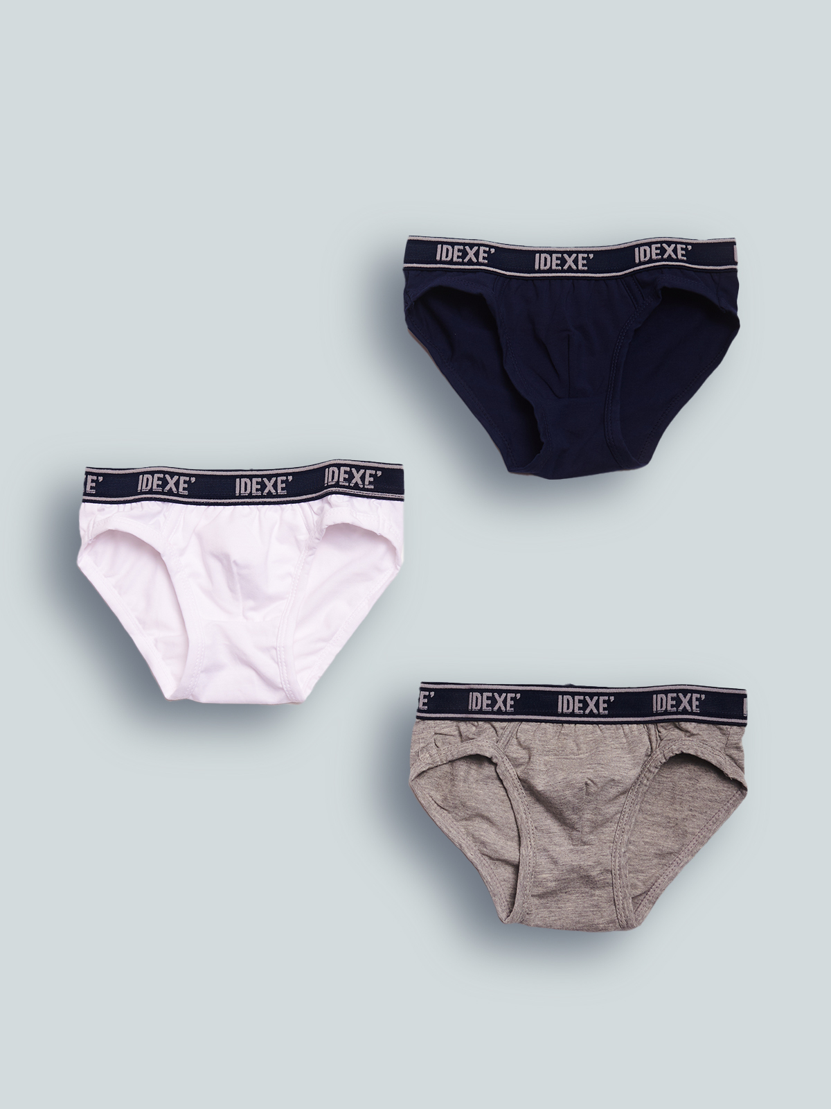 Set composto da tre slip in jersey di cotone elasticizzato, Morbido e confortevole. Tre varianti colore con elastico a vita personalizzato Idexè. Un capo intimo essenziale, adatto da abbinare alle canotte e tshirt intime della collezione.
