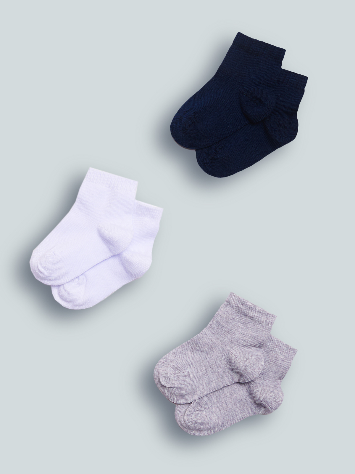Set tre paia di calzini corti in Morbido Misto cotone, in tre varianti colore. Pratici e comodi da indossare tutti i giorni.
