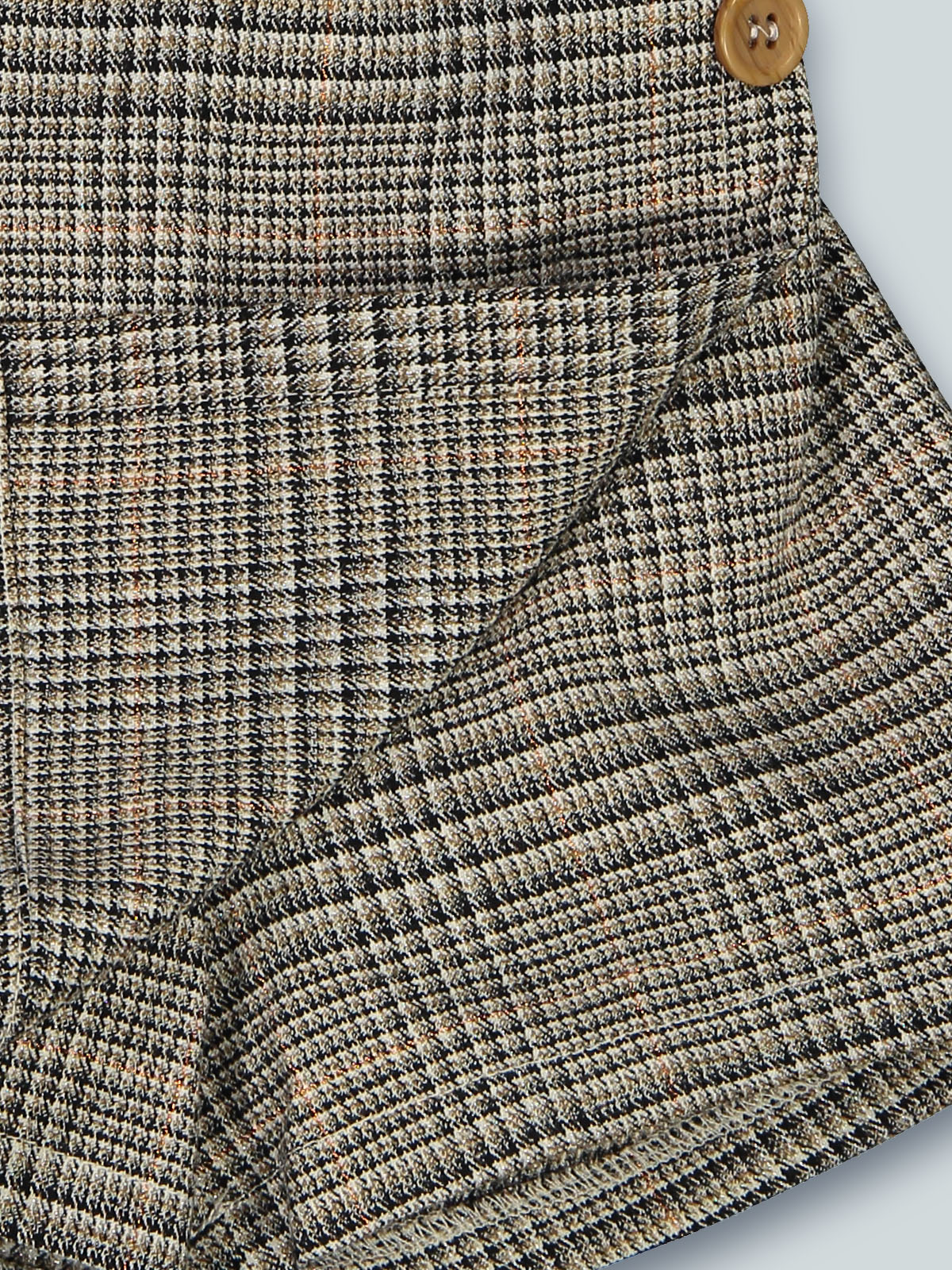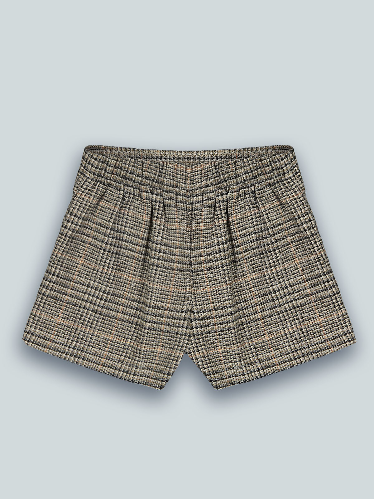 Short gonna in morbida flanella scozzese con vita elasticata per maggiore comodità. Foderato internamente in tessuto di cotone. Bottoncini effetto legno decorativi per ancora più femminilità. Ideale da abbinare ai collant della collezione per un total look alla moda