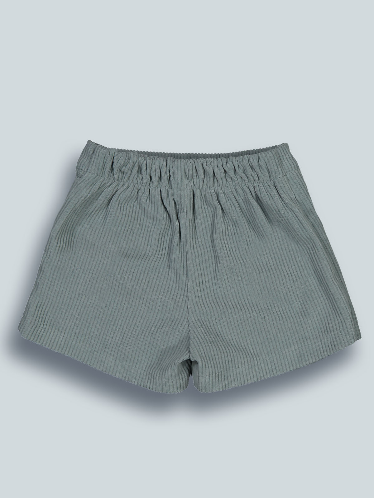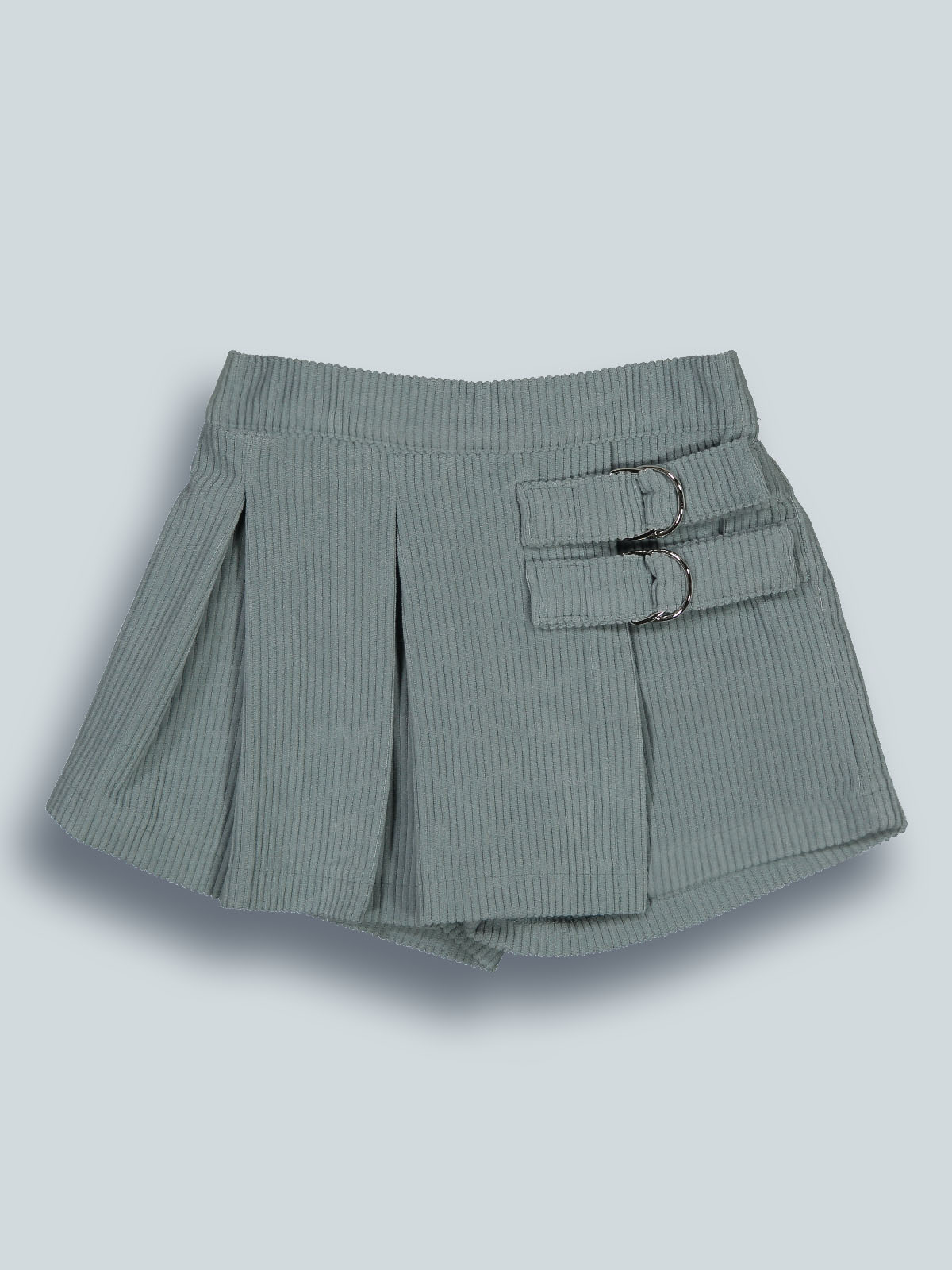 Shorts gonna in morbido velluto con vita elasticata per maggiore comodità. Parte della patta con pieghe. Motivo laccetti davanti per ancora più femminilità. Ideale da abbinare ai collant della collezione per un total look alla moda.