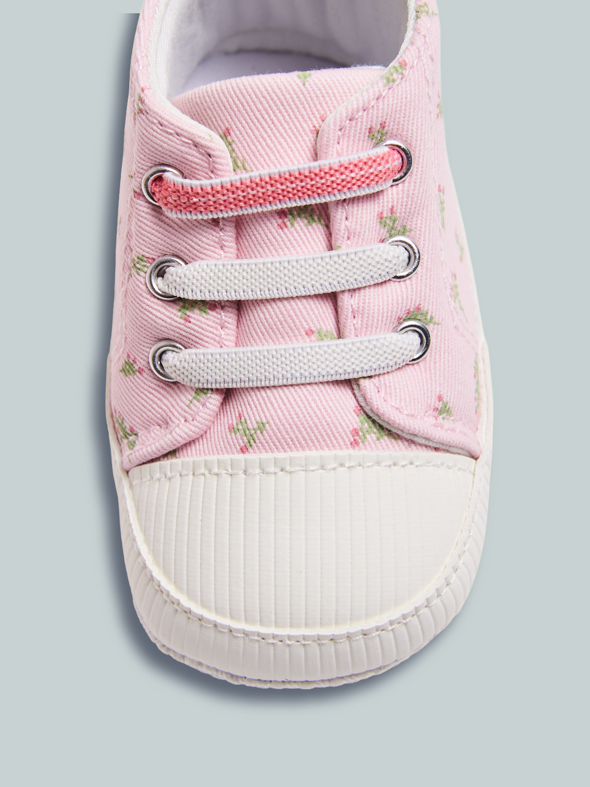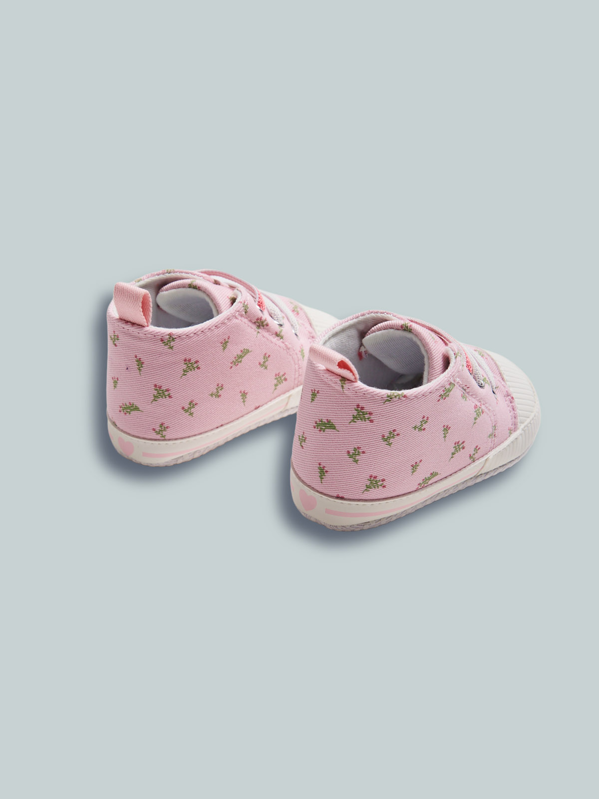 Le prime scarpine per neonata non possono che essere alla moda. Sneakers alta impreziosita da particolari glitter, fondo antiscivolo. Questo articolo è spedito all’interno di una confezione della linea Newborn, ideale come regalo.