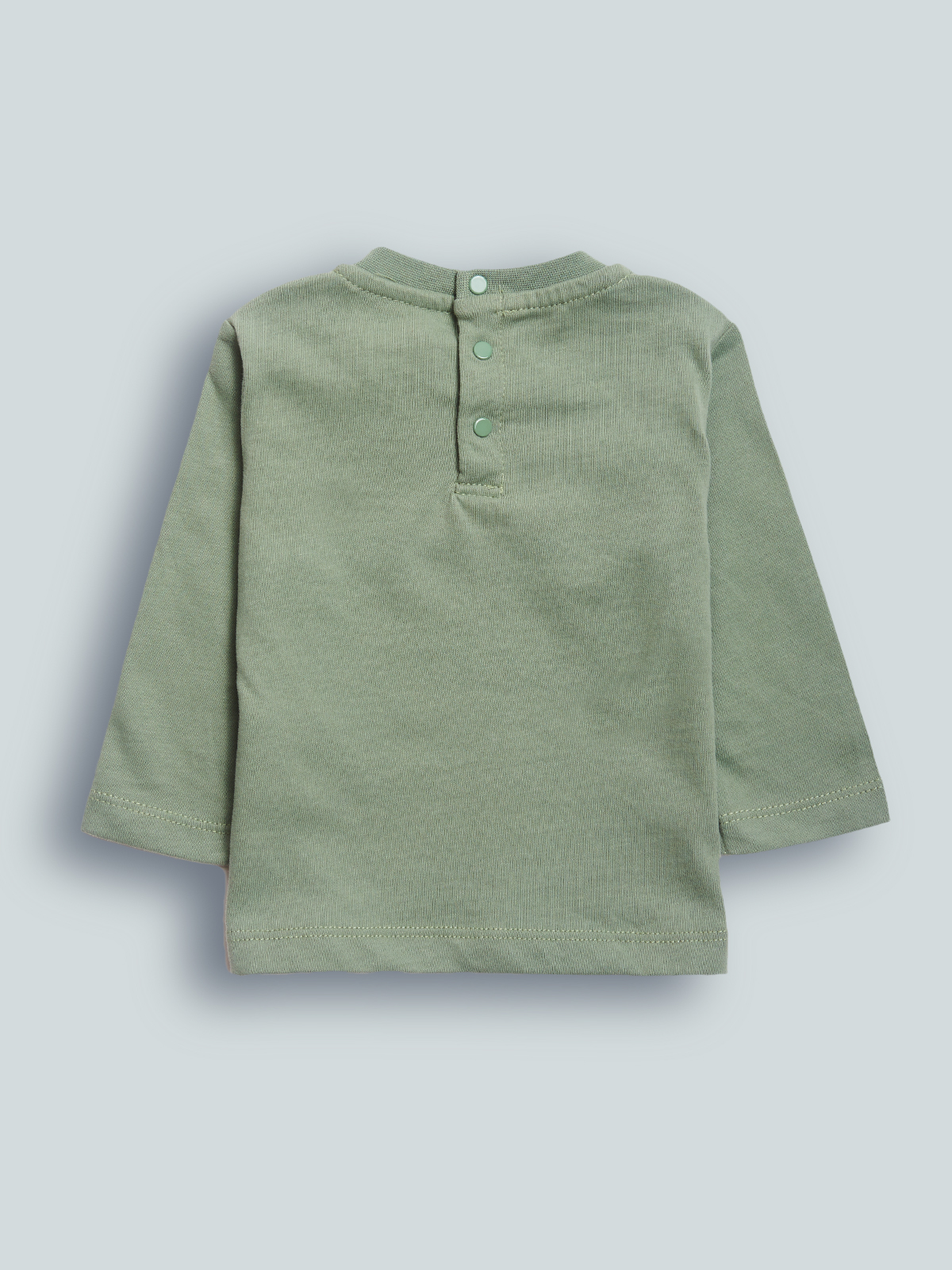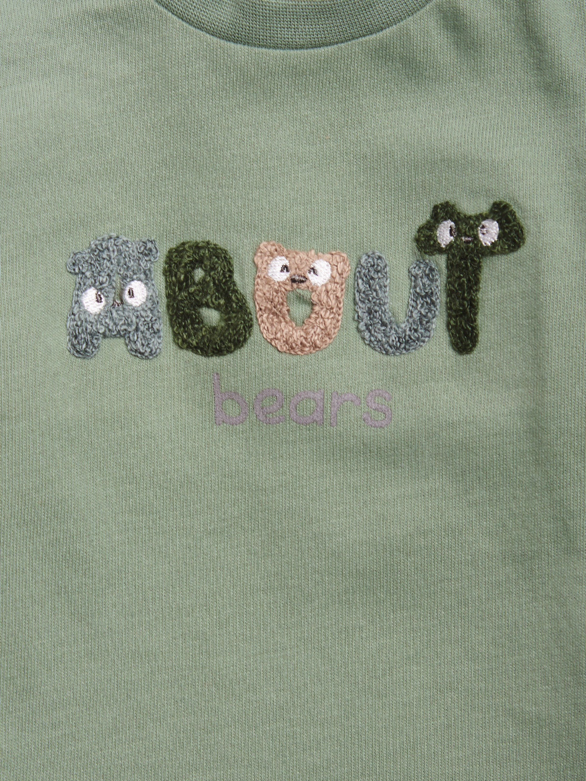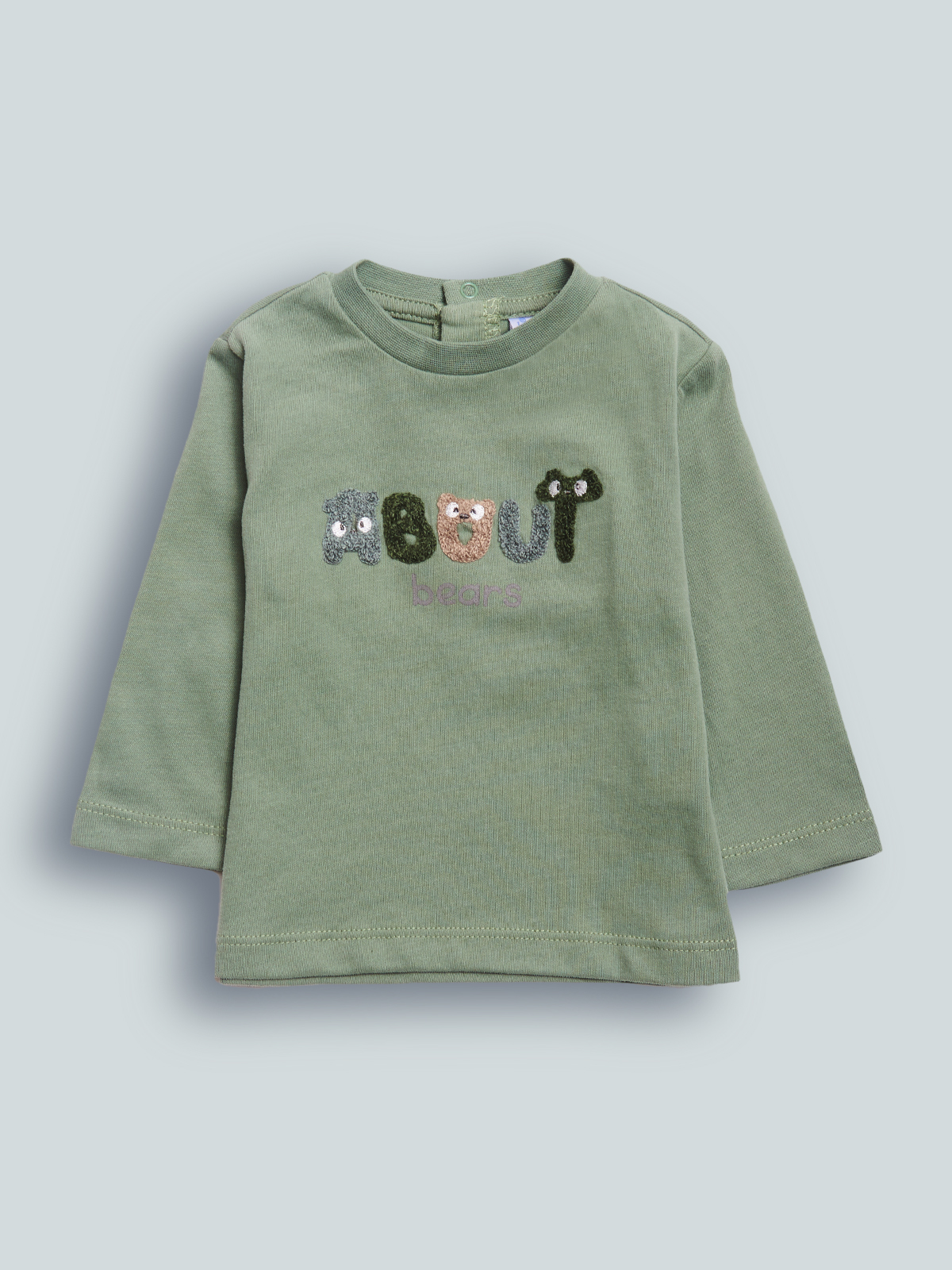 Tshirt girocollo in caldo cotone. Apertura sulla spalla con pratici bottoncini a pressione. Un capo pratico e divertente grazie al ricamo punto spugna davanti, ideale da indossare tutti i giorni.