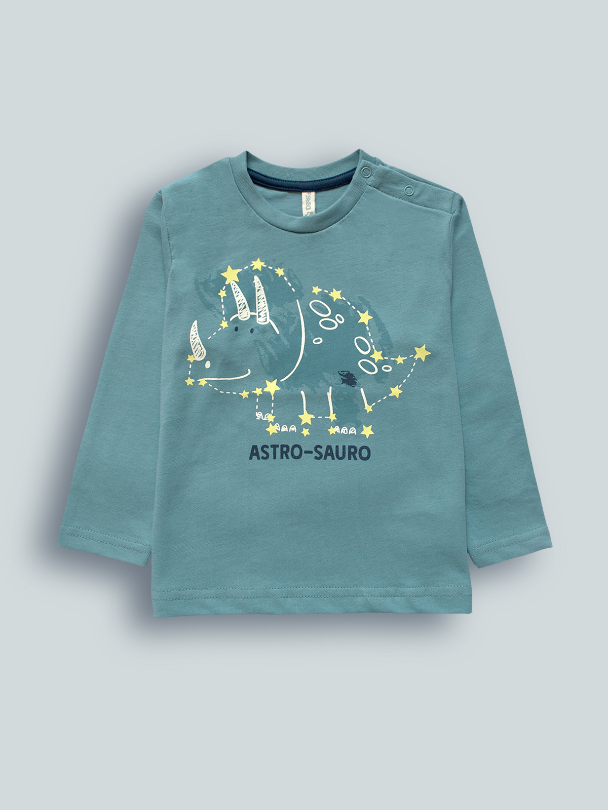 Tshirt Manica lunga girocollo in cotone, pratica apertura con bottoncini a pressione su spalla. Simpatica stampa sul davanti. Una tshirt pratica e facile da abbinare ad un jeans o ad un comodo pantalone in felpa.
