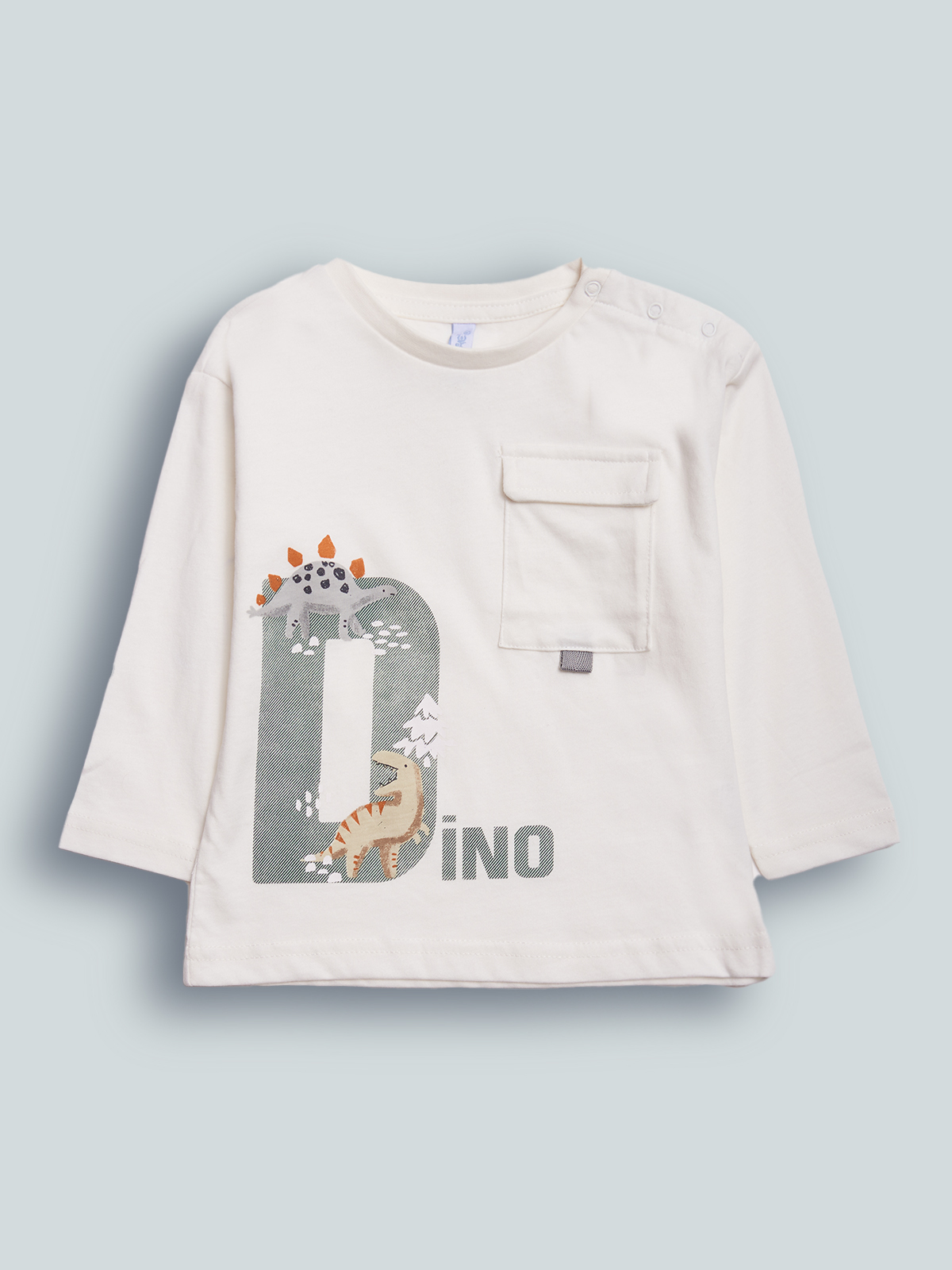 Tshirt manica lunga girocollo in caldo cotone, pratica apertura con bottoncini a pressione su spalla, taschino e stampa davanti. Il capo ideale da indossare tutti i giorni!