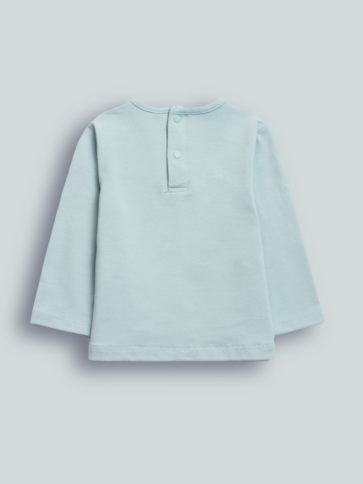 Tshirt girocollo a Manica lunga in cotone elasticizzato. Pratica apertura con bottoncini a pressione sul dietro, stampa arricchita da applicazione in fettuccia effetto petali. Confortevole e divertente.