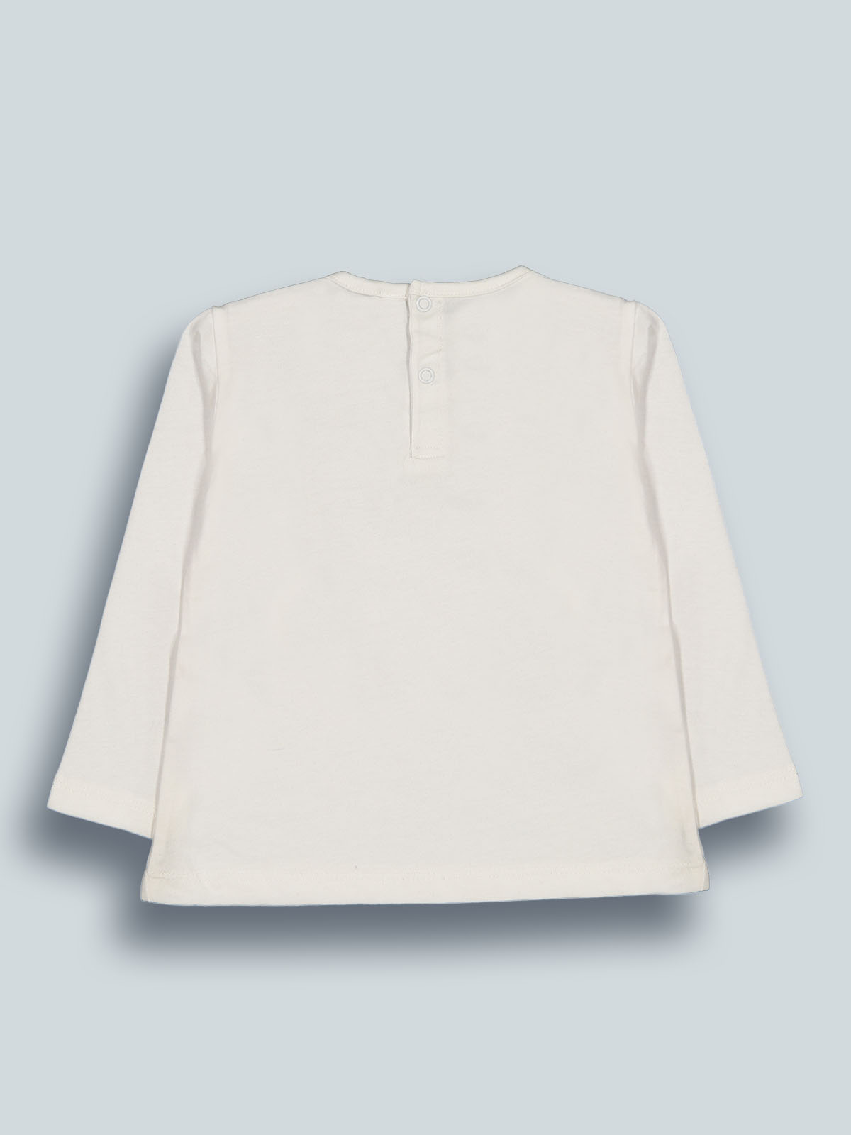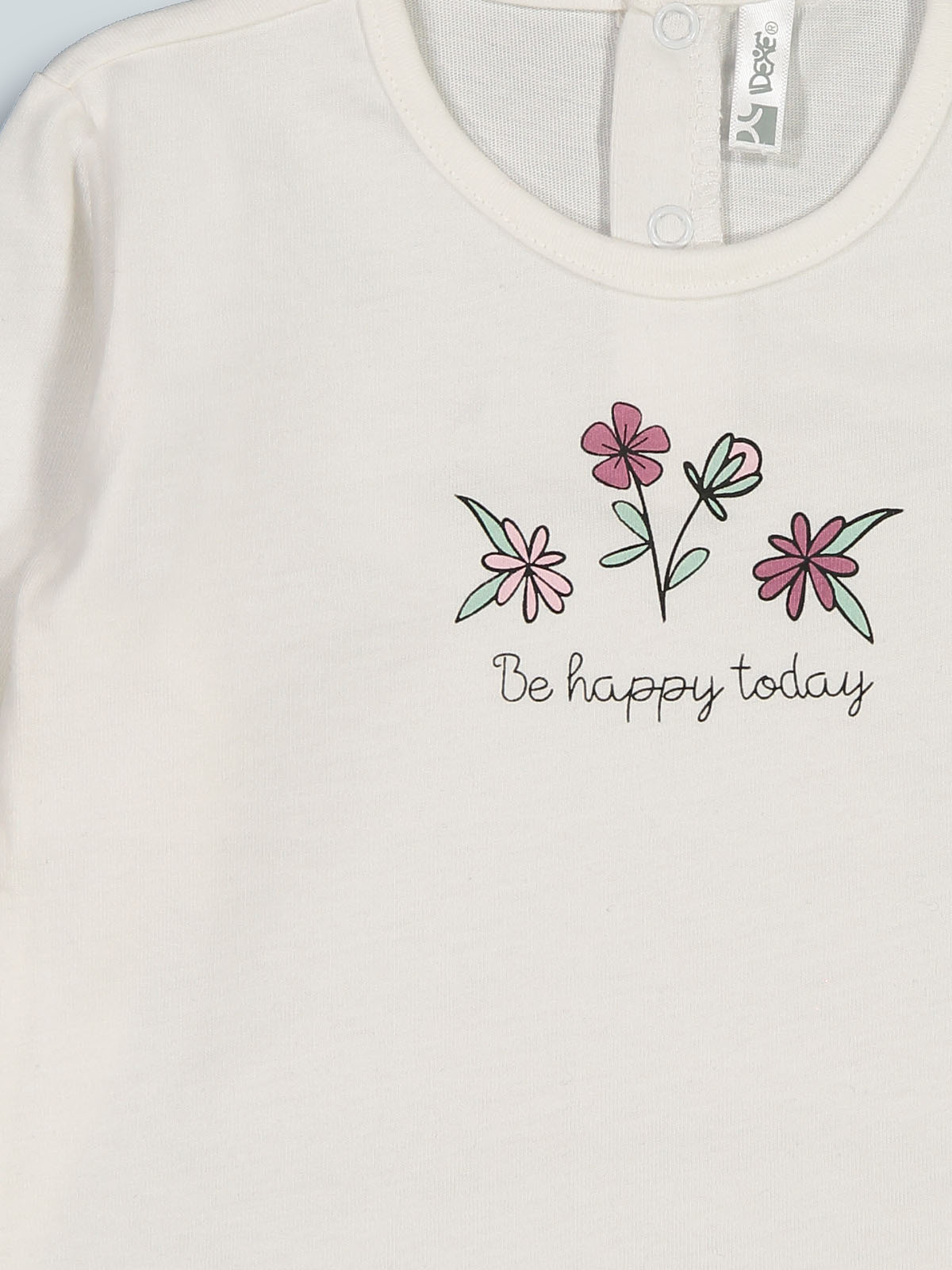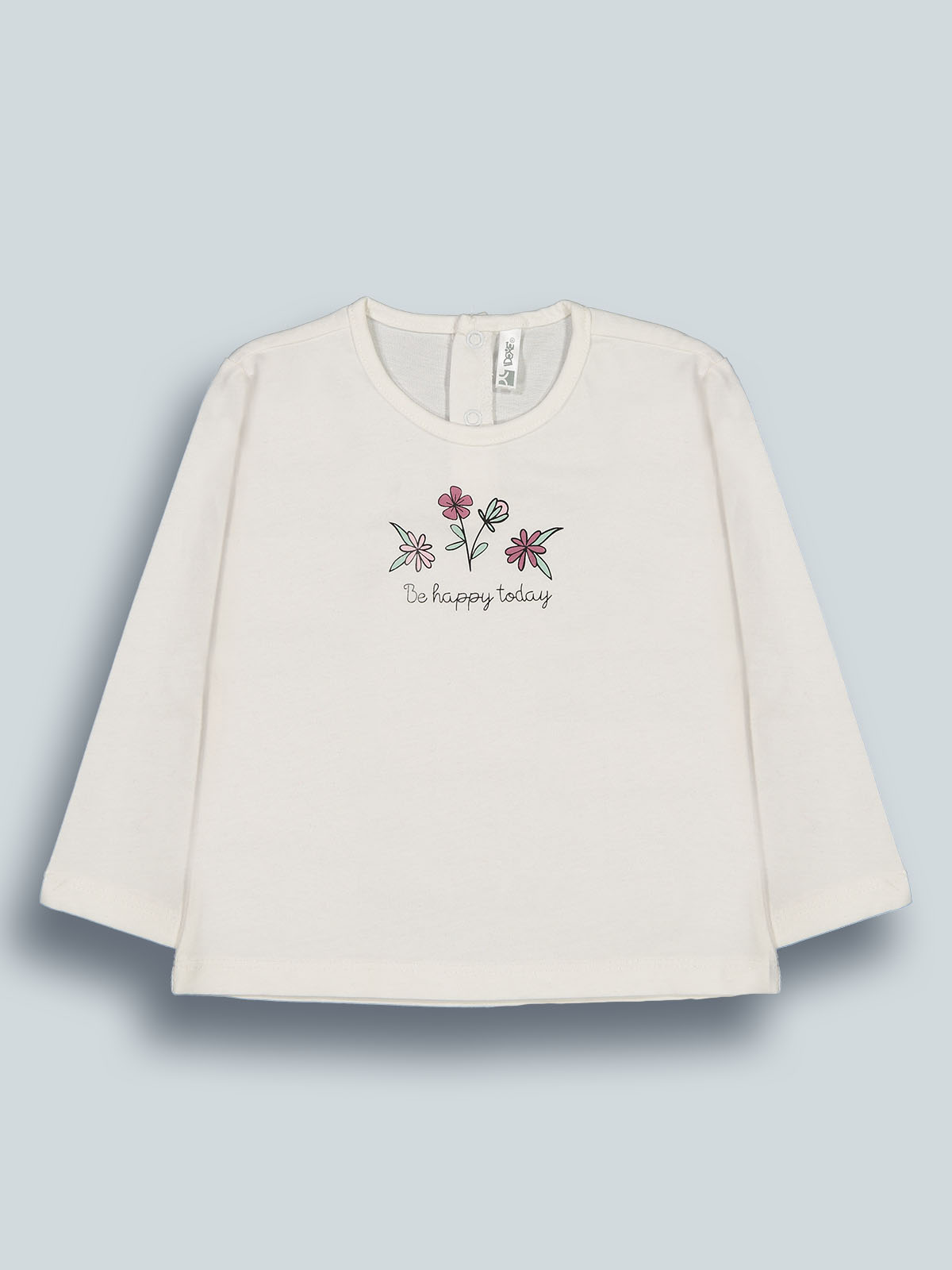 Tshirt in caldo cotone manica lunga con pratica apertura sul dietro grazie ai bottoncini a pressione. Simpatica stampa fiori con scritta. Un capo di facile abbinamento e ideale da indossare all’asilo e nel tempo libero.