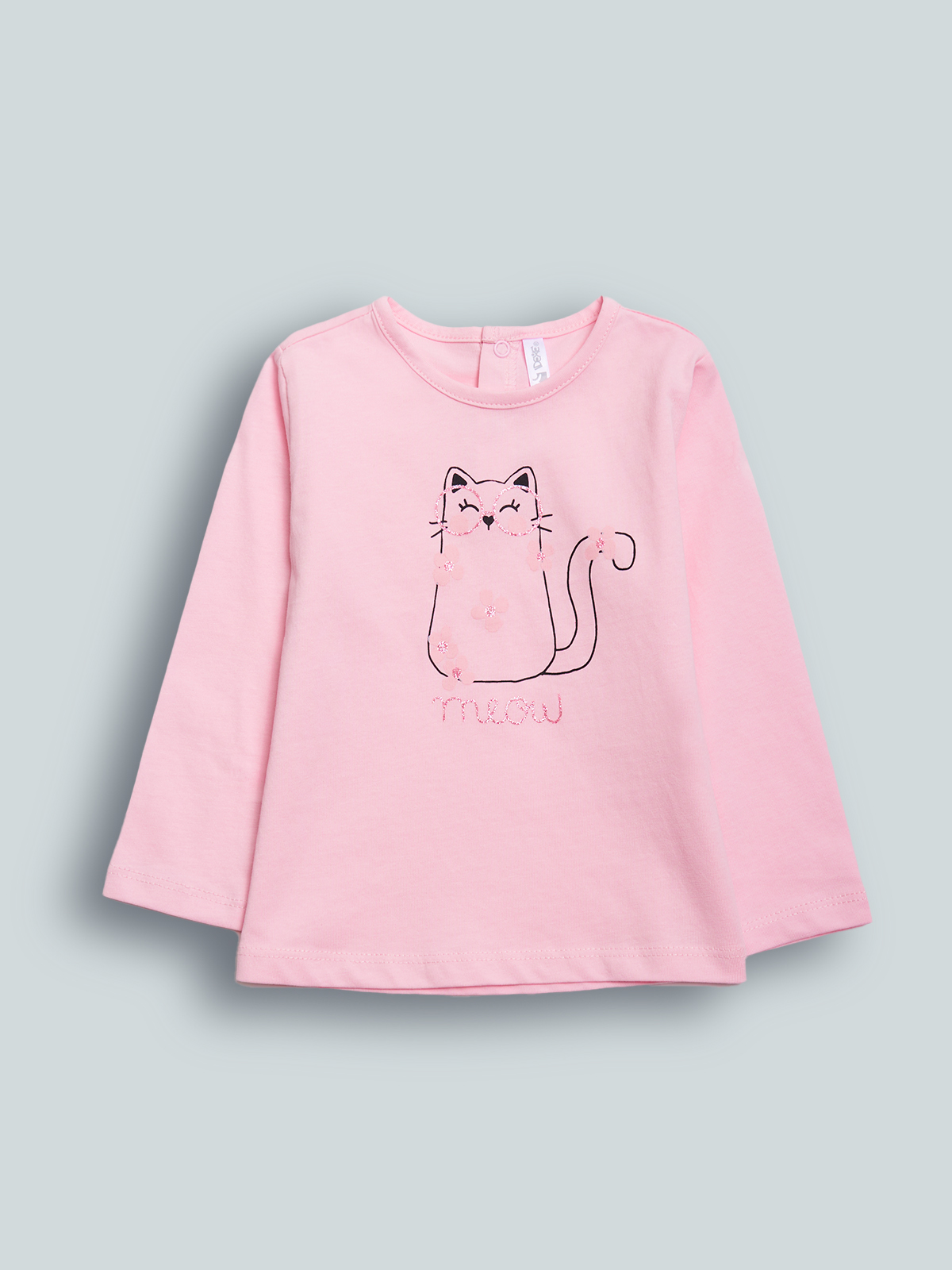 Tshirt in cotone Manica lunga con pratica apertura sul dietro grazie ai bottoncini a pressione. Tenera stampa gattino con glitter per arricchire il tutto. La tshirt ideale per divertirsi con un simpatico amichetto.