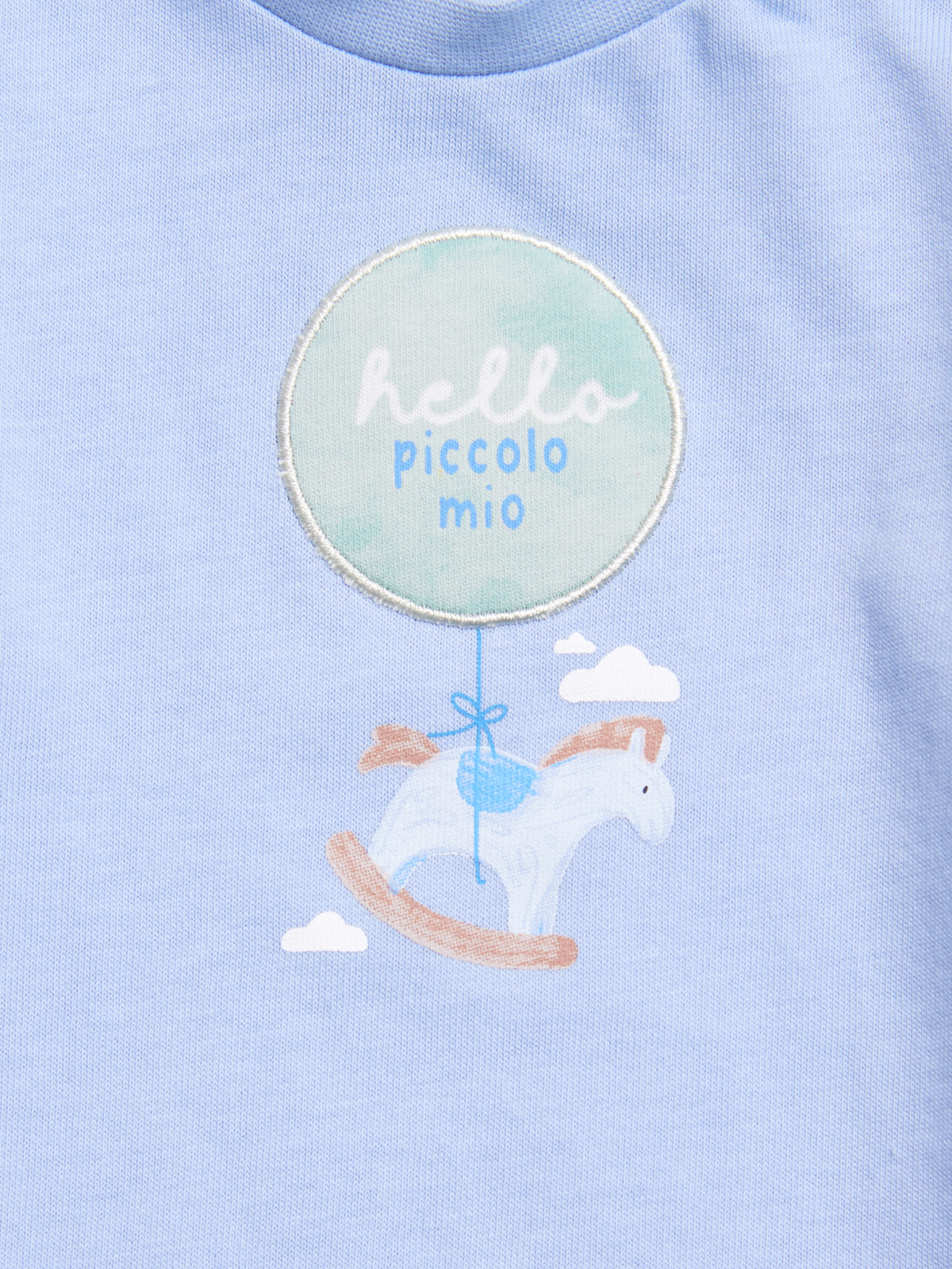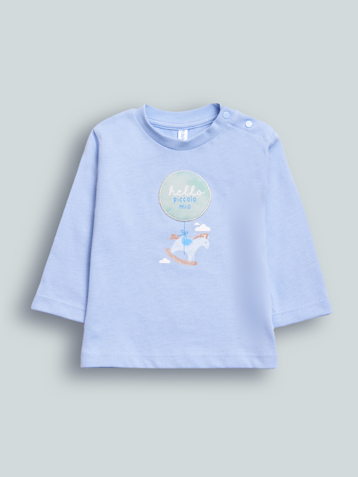 Tshirt girocollo a Manica lunga in cotone. Pratica apertura con bottoncini a pressione su spalla, grafica stampata e ricamata. Divertente e facile da abbinare.
