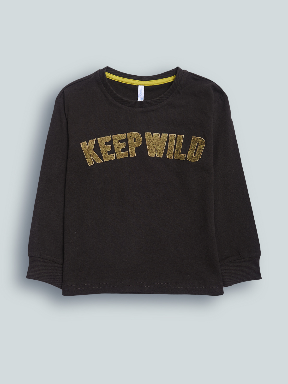 Tshirt manica lunga in caldo cotone, modello girocollo con stampa e ricamo punto spugna sul davanti. Un capo basico e confortevole, da indossare tutti i giorni.