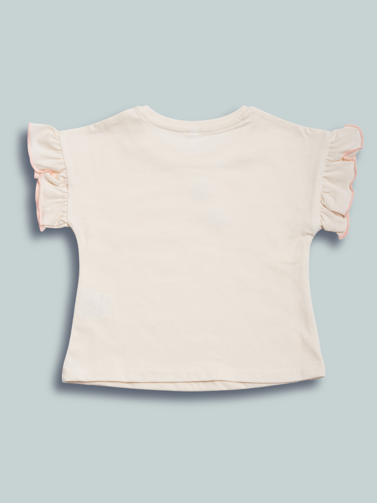 Tshirt in cotone manica corta con simpatica stampa lettering e fiori in applicazione tridimensionali. Un capo con dettagli fashion e di facile abbinamento.