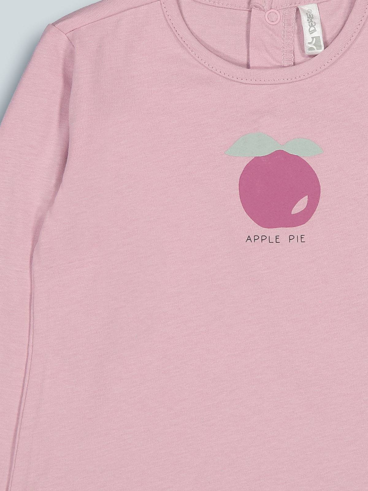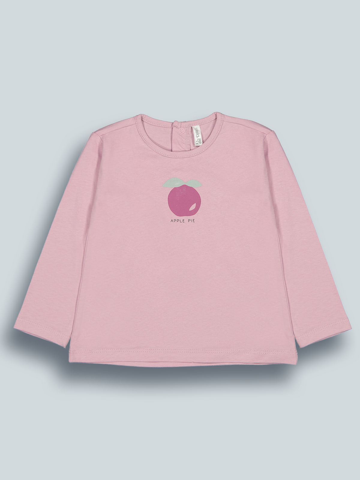 Tshirt in caldo cotone manica lunga con pratica apertura sul dietro grazie ai bottoncini a pressione. Tenera stampa mela con scritta. Ideale da indossare all’asilo e nel tempo libero.