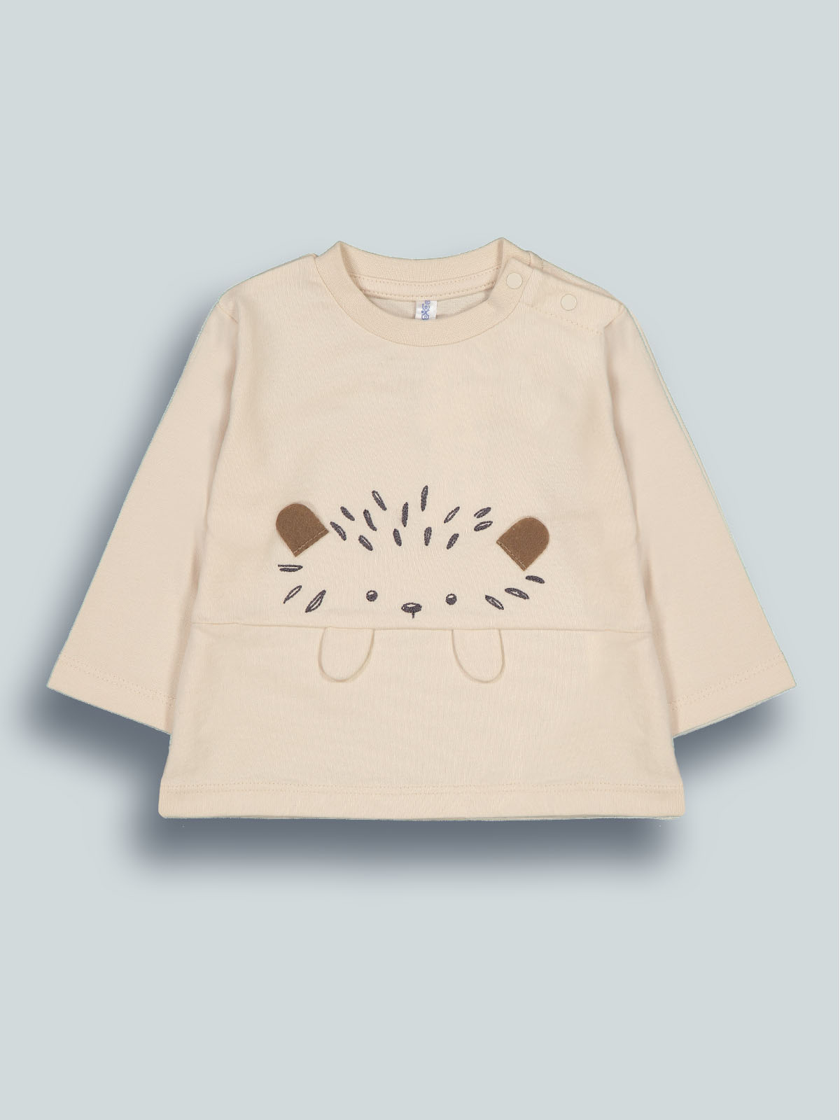 Tshirt in caldo cotone manica lunga, apertura su spalla. Elemento decorativo: taglio davanti con orecchie e zampine 3D, stampa musetto. Un capo versatile e comodo facilmente abbinabile.