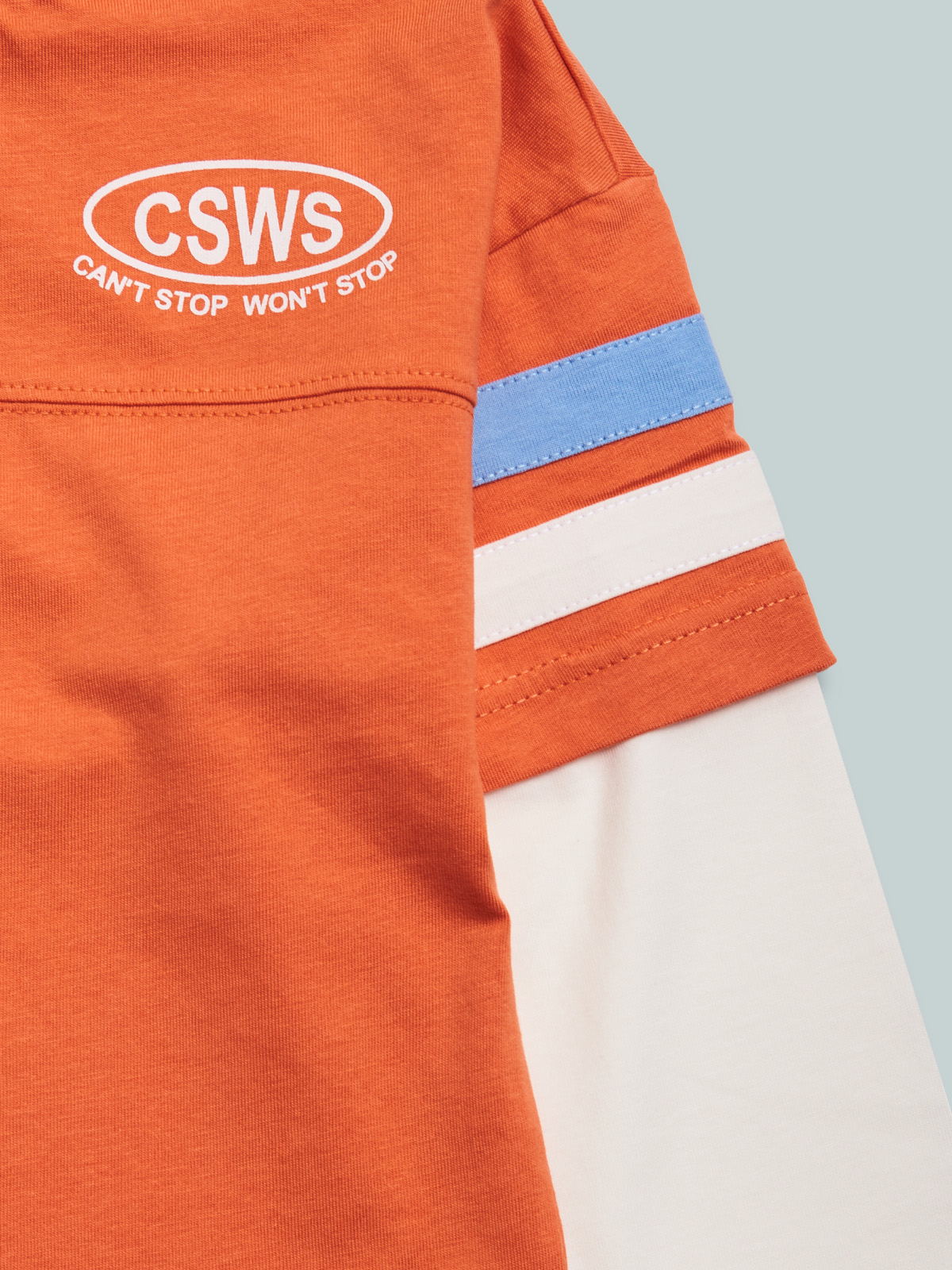 Tshirt manica lunga in cotone modello girocollo con vestibilità over, maniche e dettagli in contrasto, stampa sul davanti. Un capo comodo e pratico, da indossare a scuola o nel tempo libero.