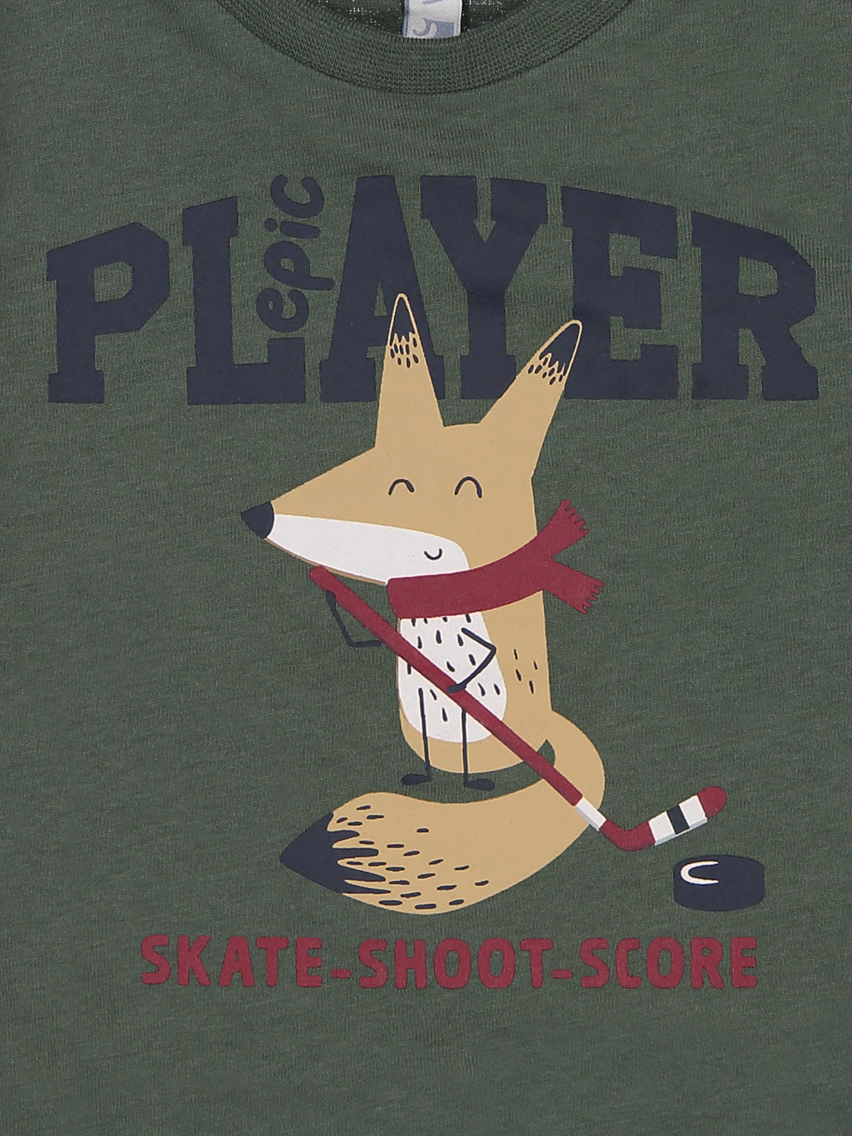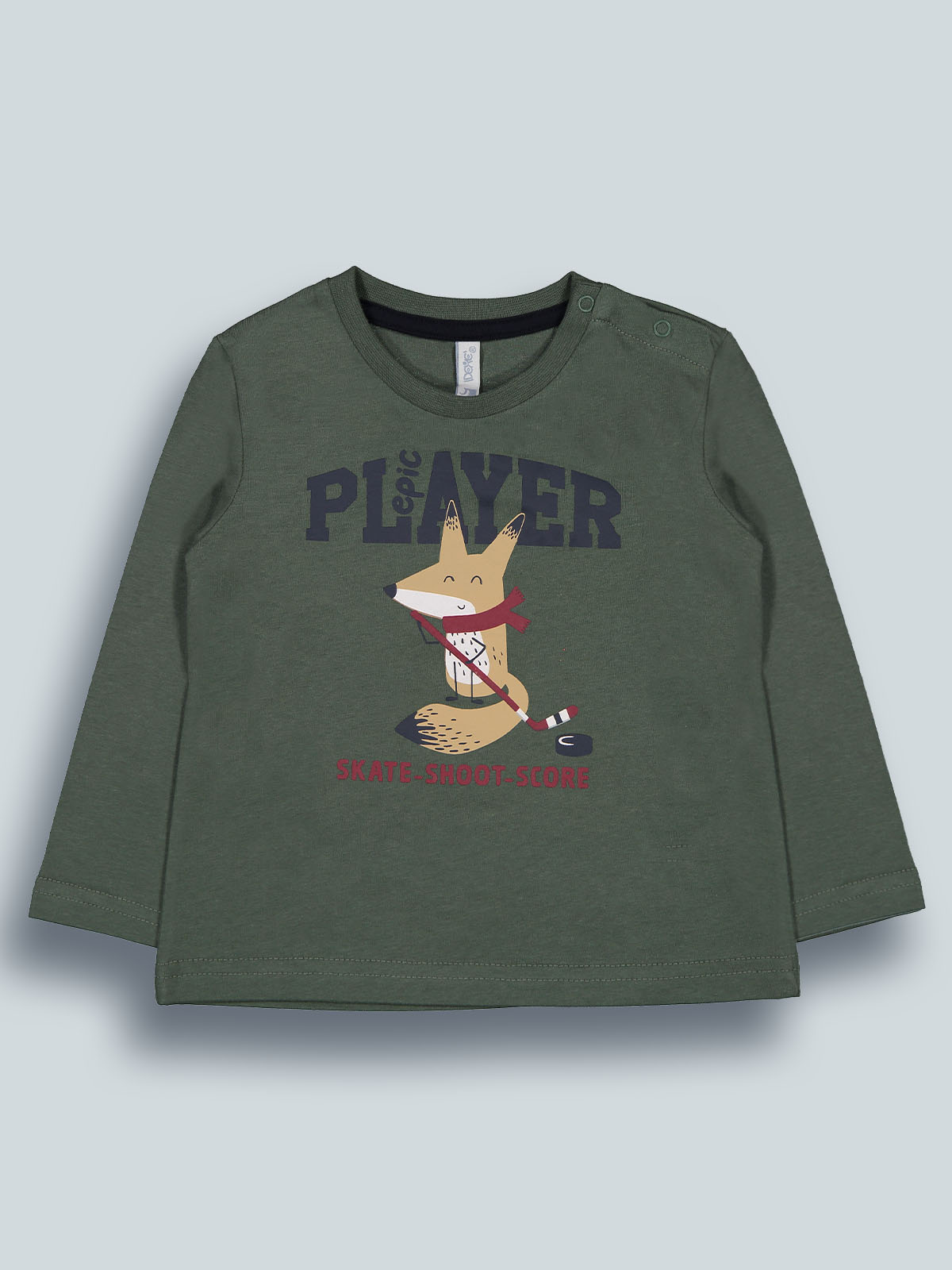 Tshirt manica lunga girocollo in caldo cotone, pratica apertura con bottoncini a pressione su spalla. Stampa sul davanti. Una tshirt pratica e facile da abbinare ad un jeans o ad un comodo pantalone in felpa.