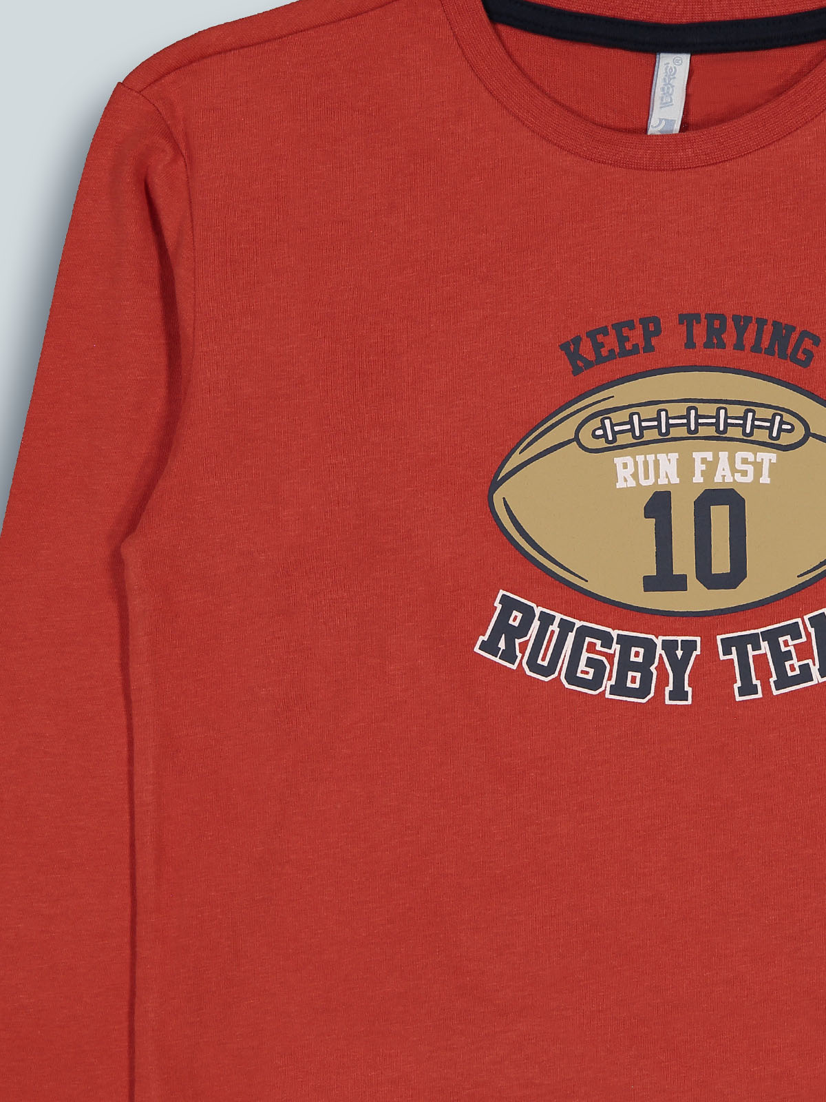 Tshirt manica lunga in caldo cotone, modello girocollo con stampa sporty sul davanti. Un capo nel colore di tendenza di stagione, perfetto da indossare tutti i giorni.