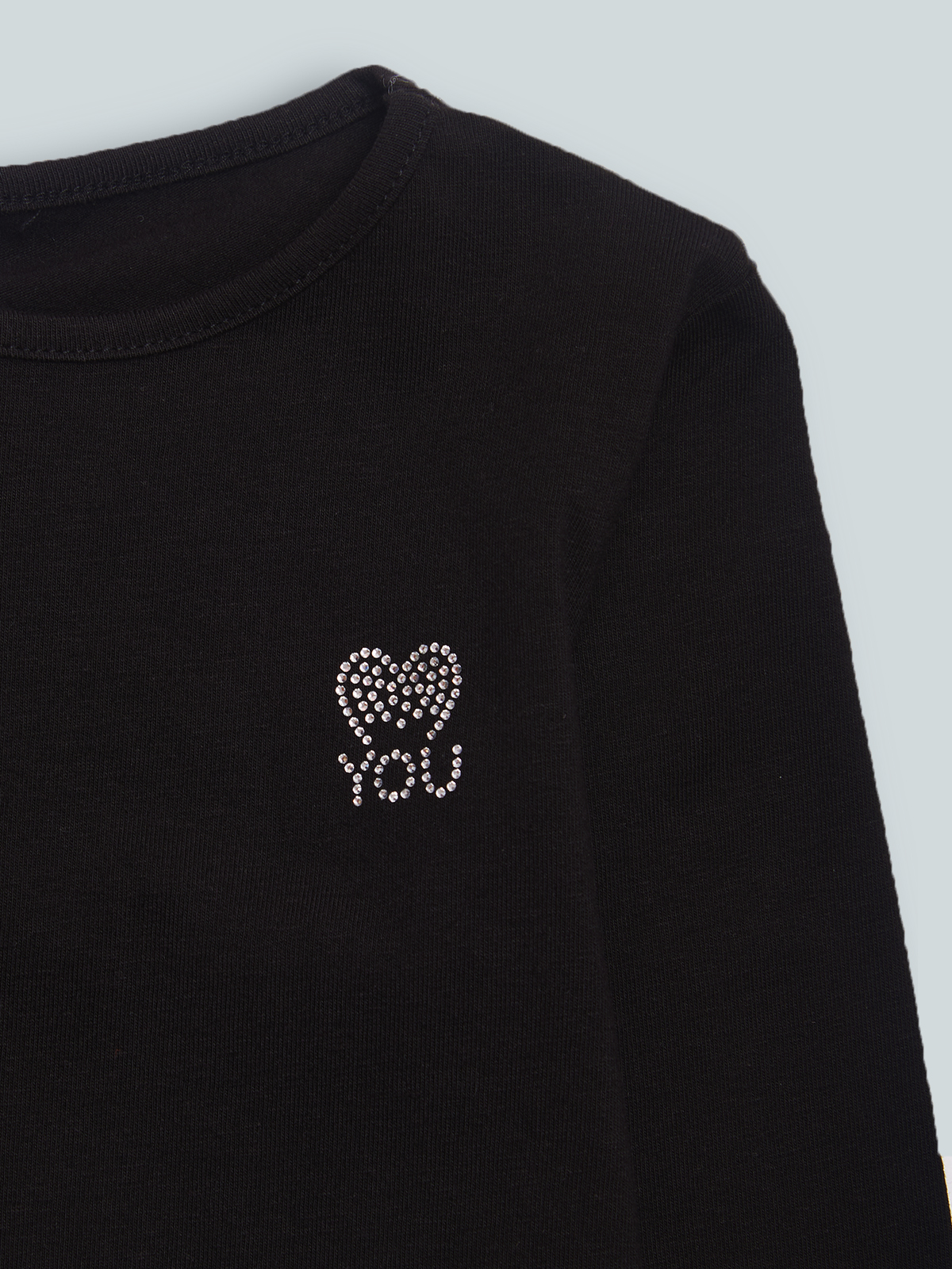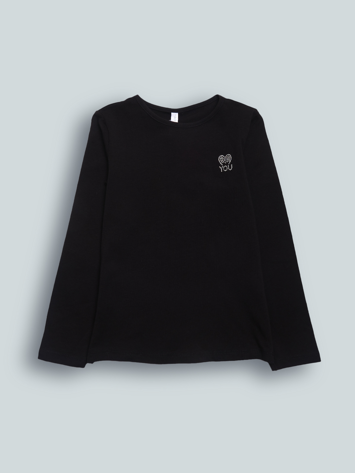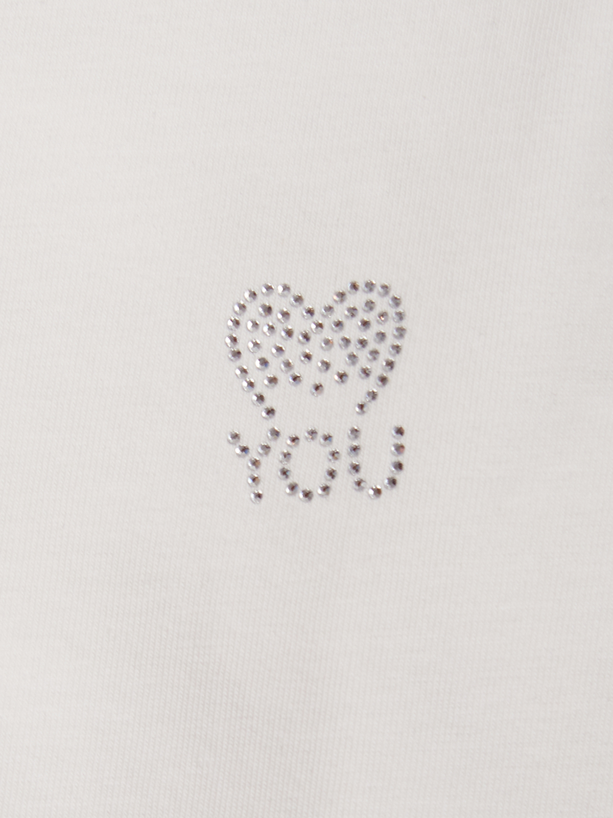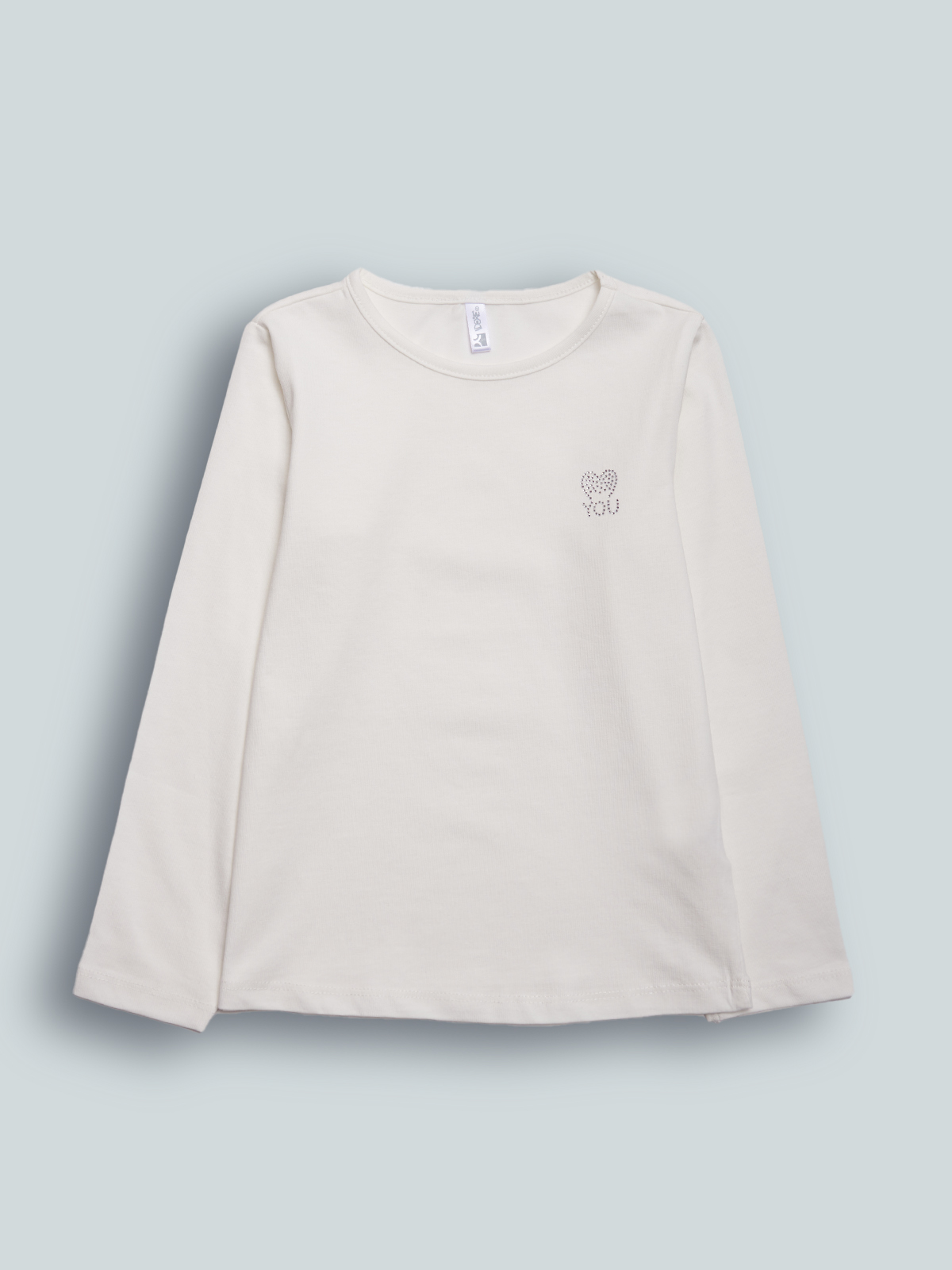 Tshirt in Morbido cotone elasticizzato, Manica lunga. Impreziosita da un cuore in strass sul davanti. Una tshirt basica dal sapore romantico.