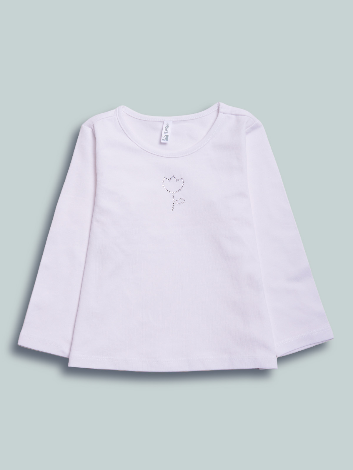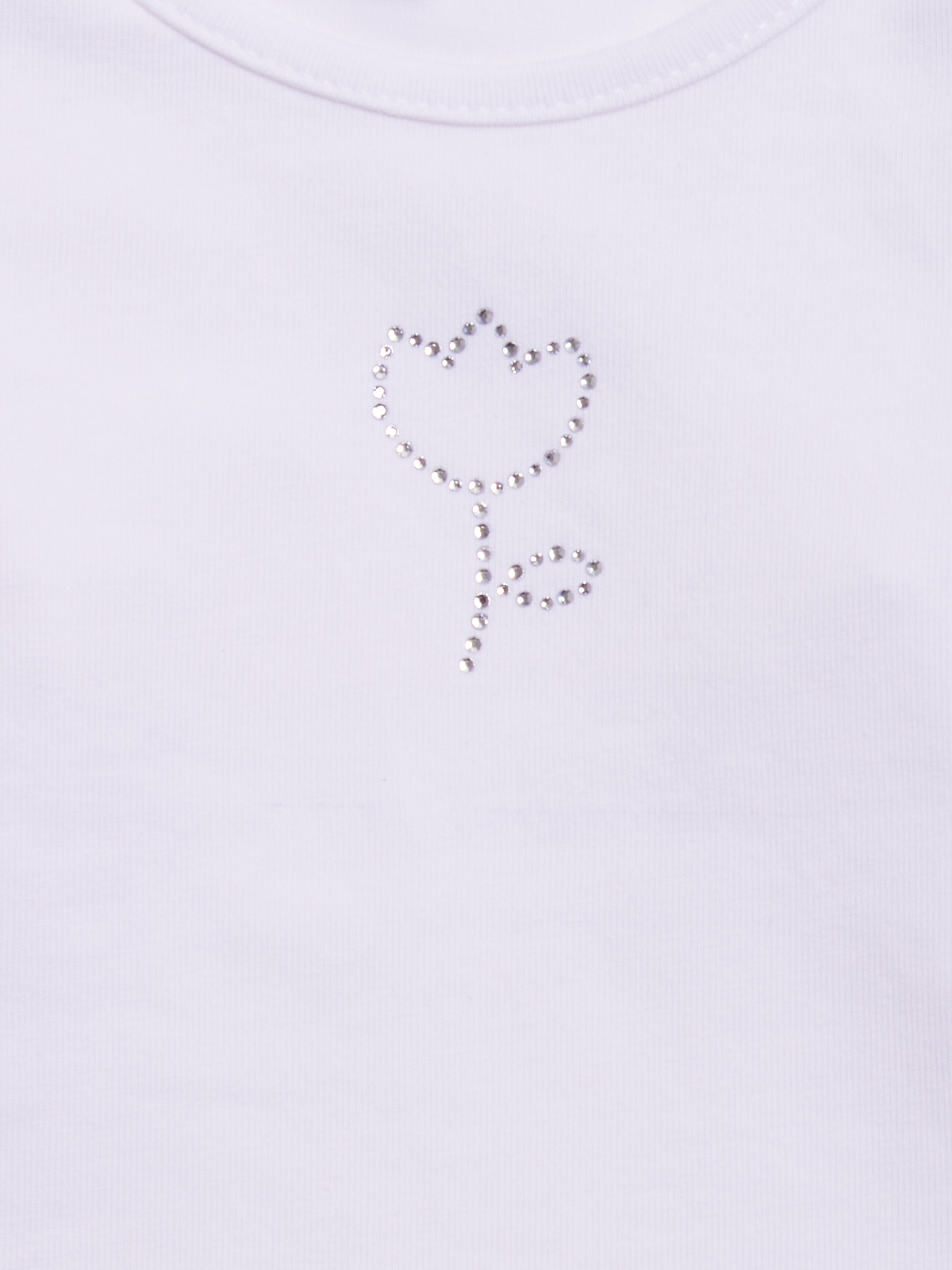 Tshirt in cotone elasticizzato manica lunga con tulipano in strass. Un modello basic ideale da abbinare sotto gli abiti della cerimonia, per un look da vera principessa.