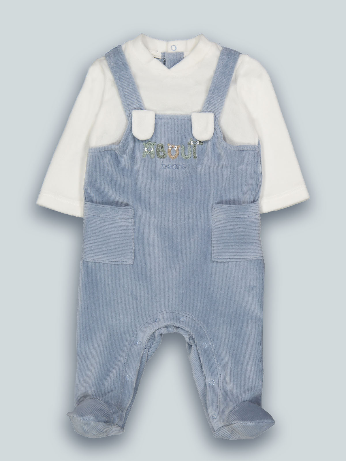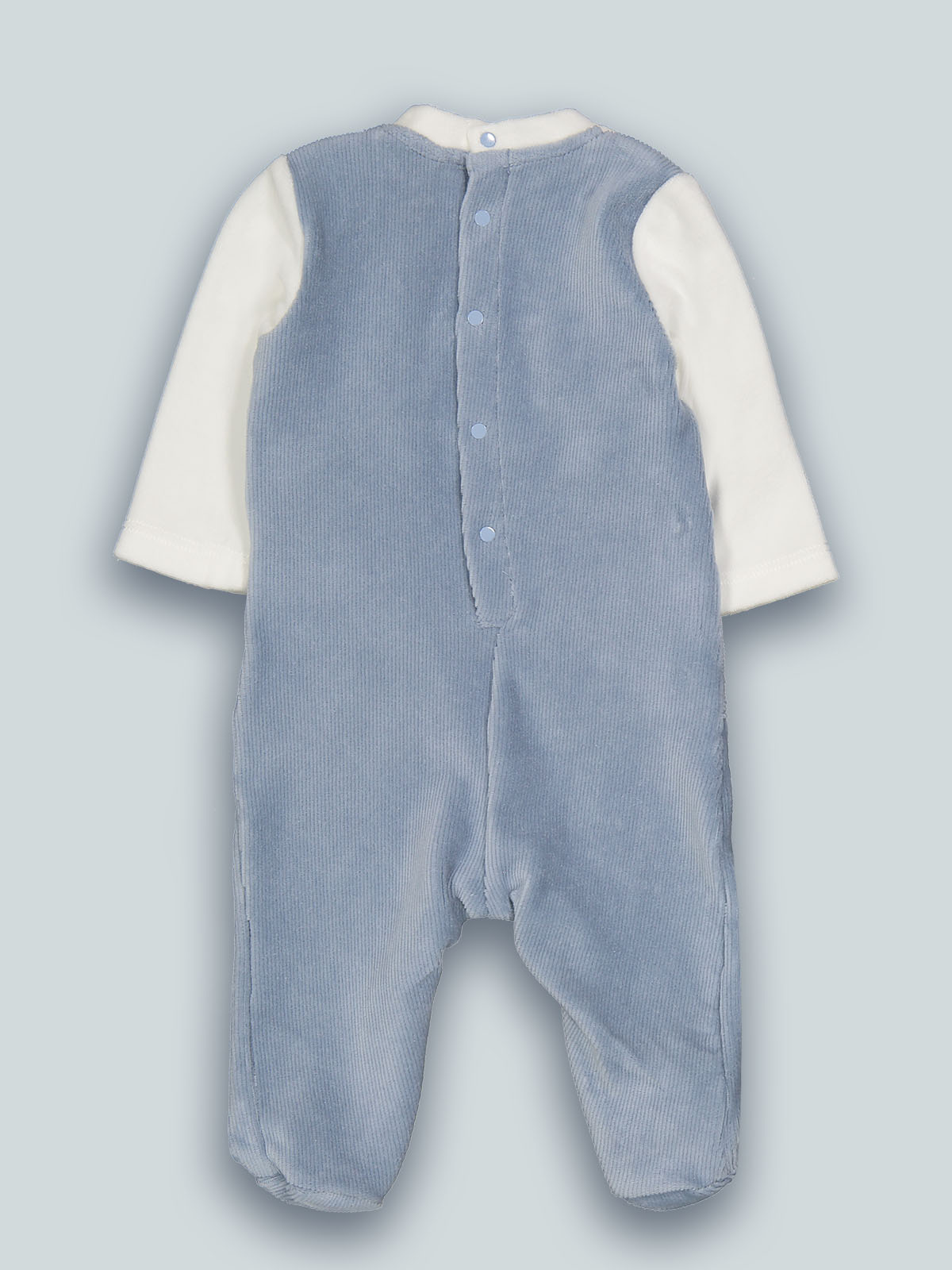 Tutina finta salopette in ciniglia a coste, orecchie inserite nel taglio in peluches e ricamo davanti. Apertura dietro ed entrogamba con bottoni a pressione. Non farti sfuggire questo meraviglioso capo ideale per la nanna o giornate molto fredde.