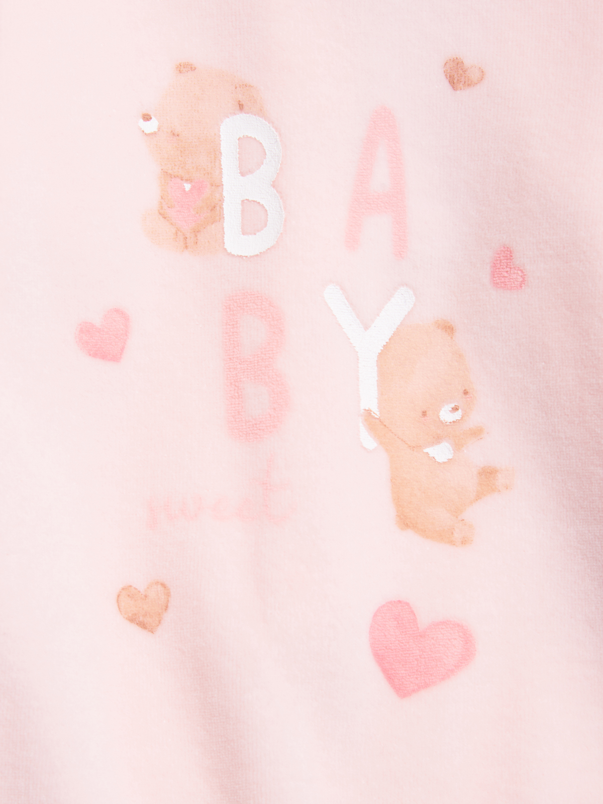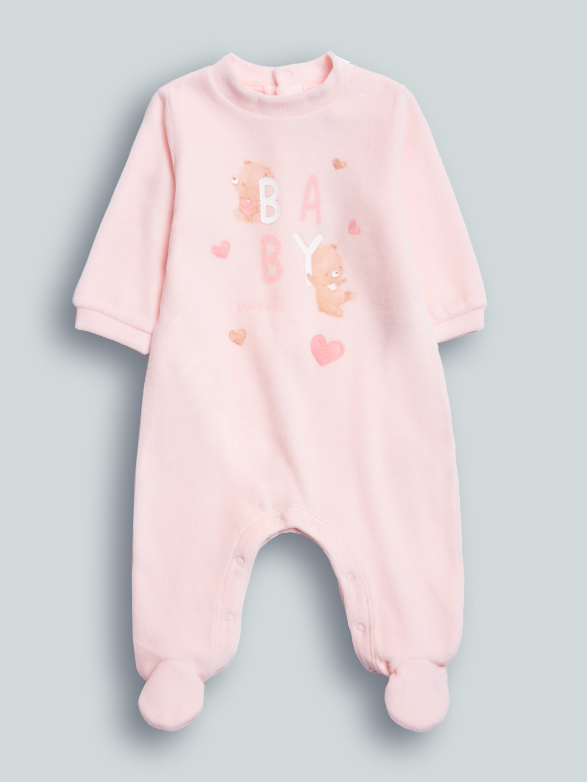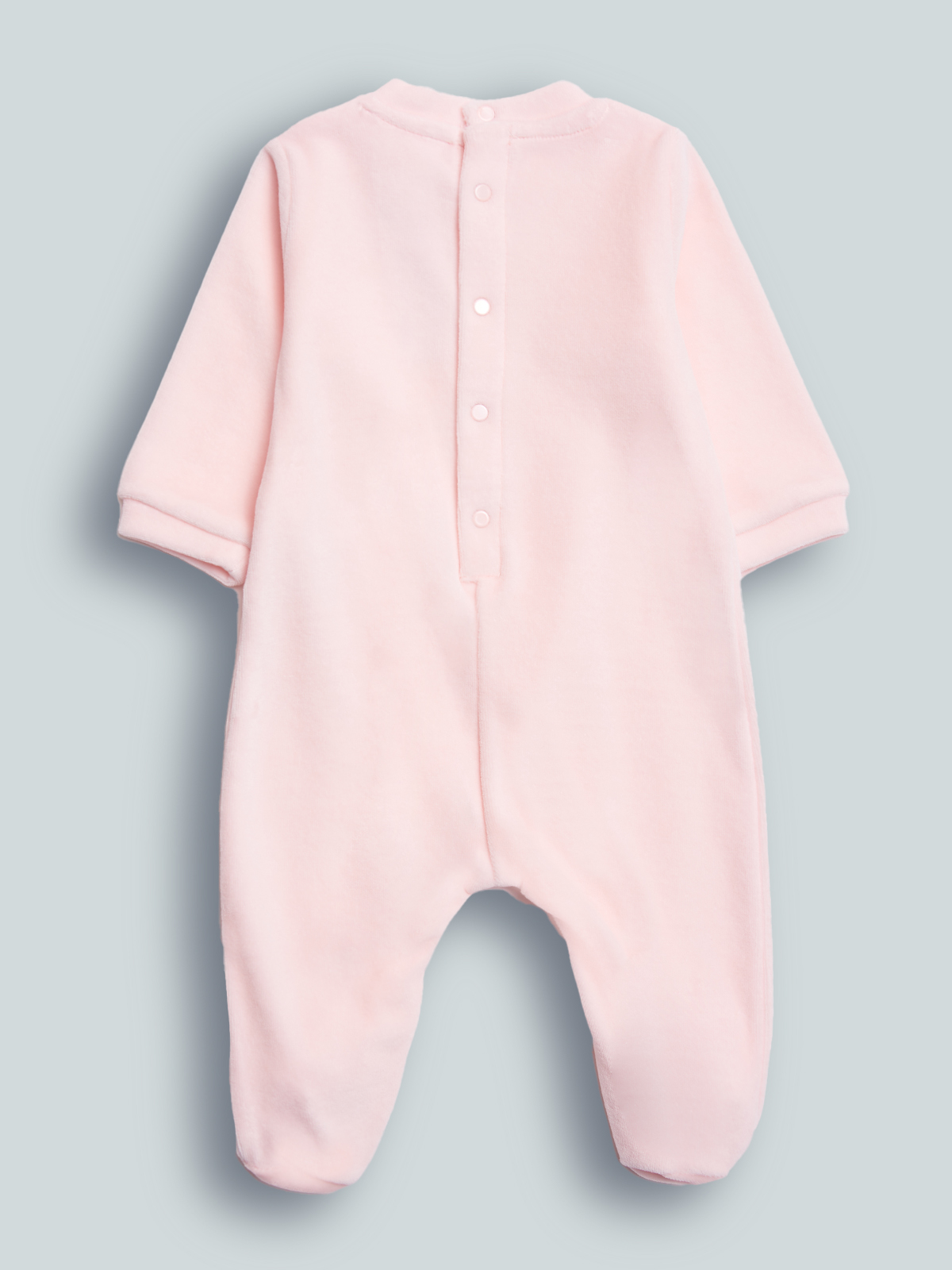 Tutina a Maniche lunghe in ciniglia. La vestibilità è Morbida e pratica grazie a bottoni a pressione sul retro e sul cavallo. Il capo è decorato da una tenerissima stampa. Questo pigiama fa parte del corredino composto da tutti gli articoli indispensabili per la tua neonata.
