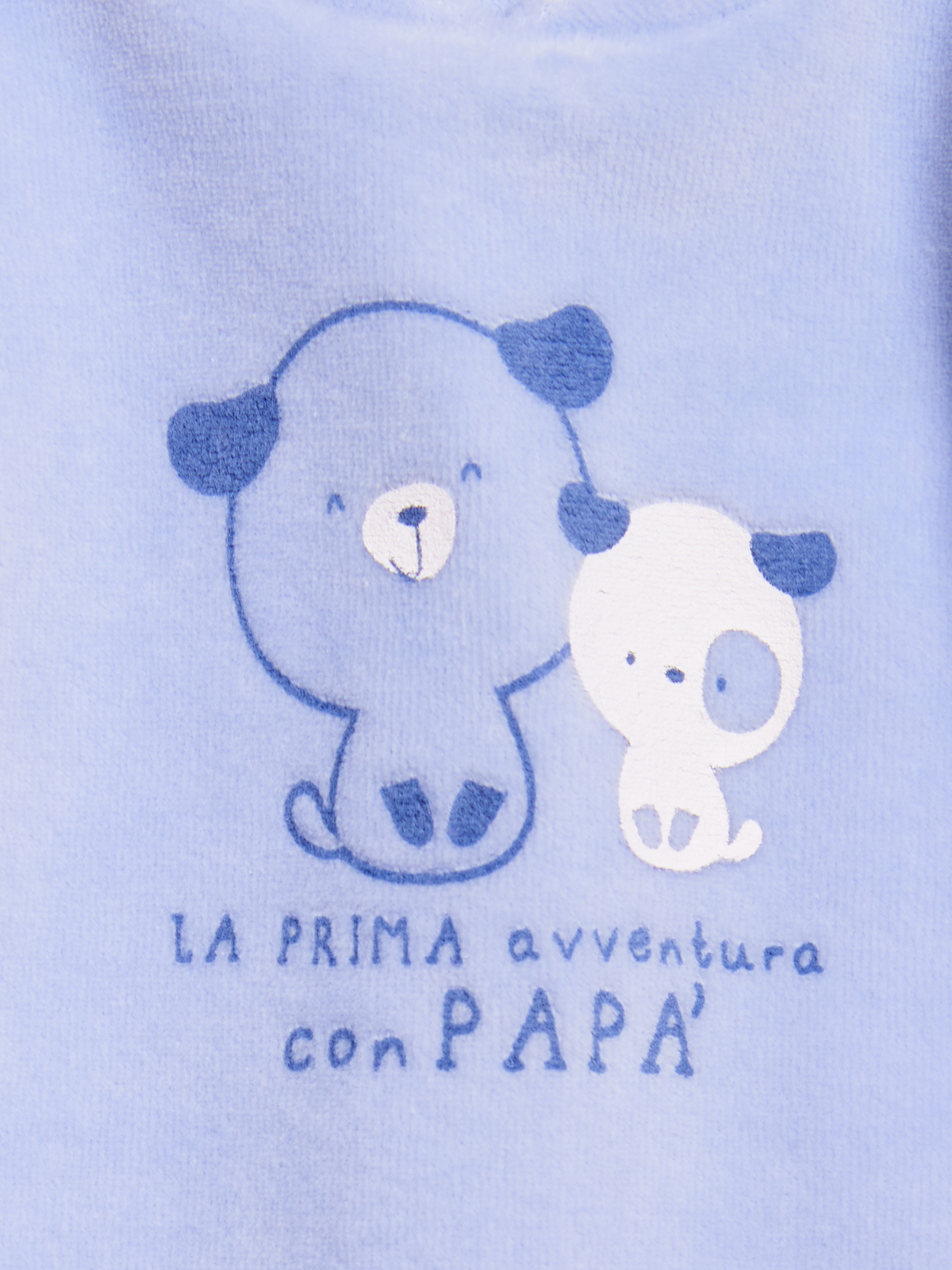 Pigiama manica lunga per neonato. Girocollo serafino. Chiusura con bottoni a pressione per agevolarne l’indosso. Soffice ciniglia per tenere al caldo il nostro neonato. Elemento decorativo: simpatica stampa davanti. Questo pigiamino fa parte del corredino composto da tutti gli articoli indispensabili per il tuo neonato.