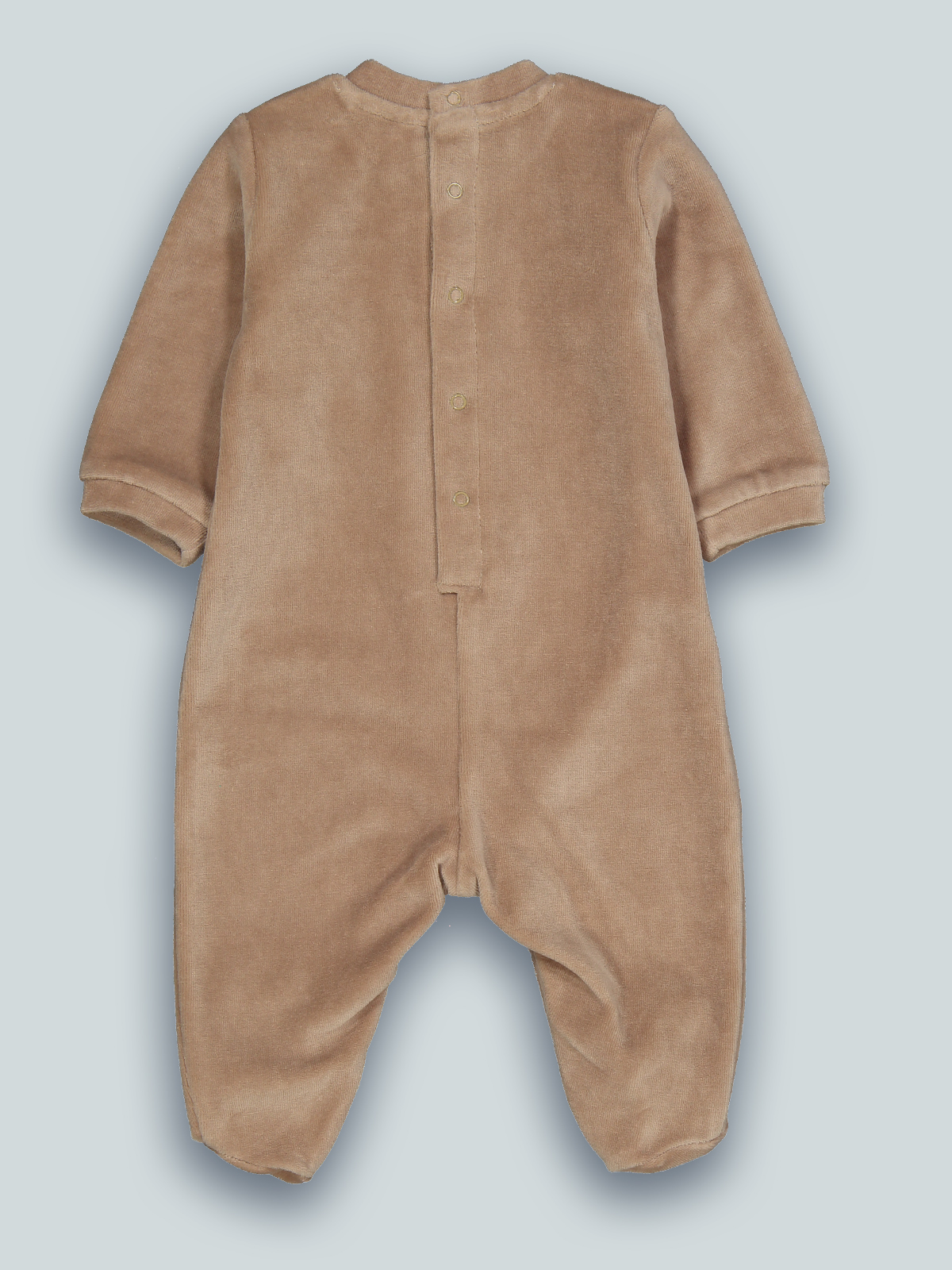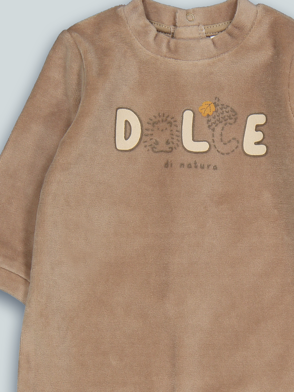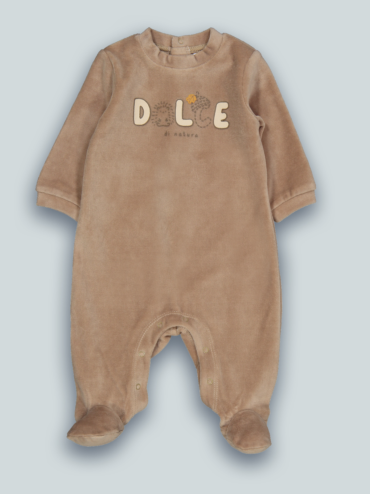 Tutina a maniche lunghe in ciniglia. La vestibilità è morbida e pratica grazie a bottoni a pressione sul retro e sul cavallo. Il capo è decorato da una simpatica stampa. Questo pigiama fa parte del corredino composto da tutti gli articoli indispensabili per il tuo neonato.