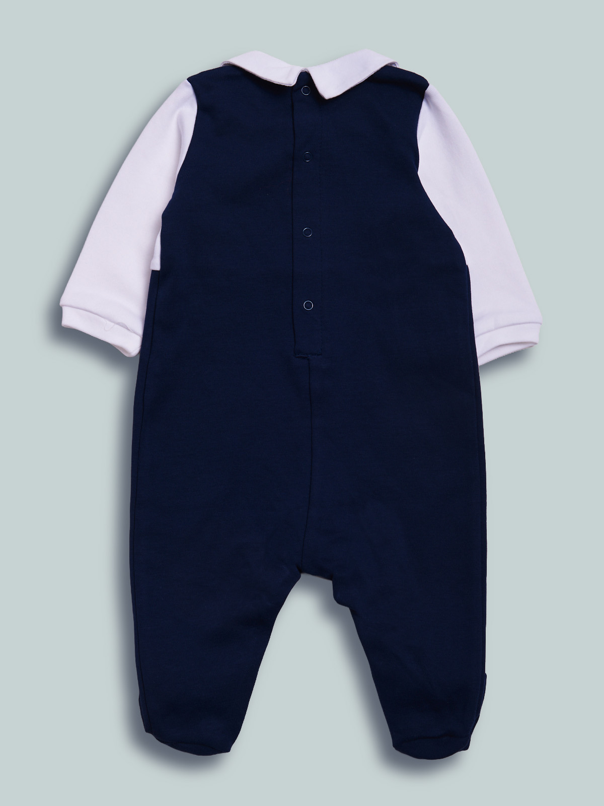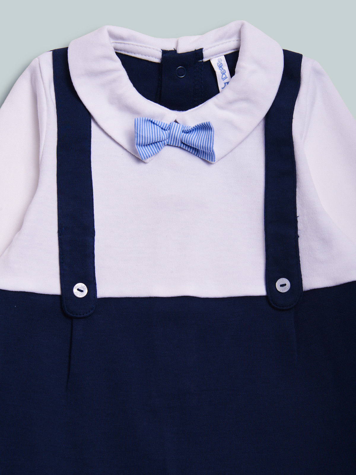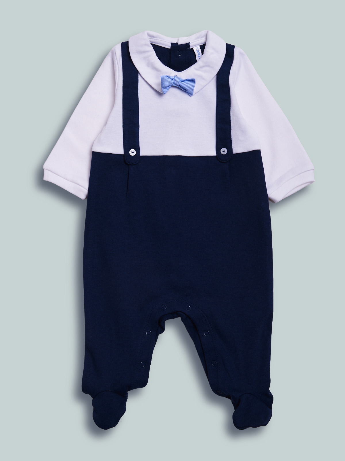 Tutina in caldo cotone, finte bretelle, papillon regolabile e removibile, aperta dietro ed entrogamba con bottoni a pressione per agevolarne l’indosso. Tutina elegante da indossare nelle occasioni più importanti.