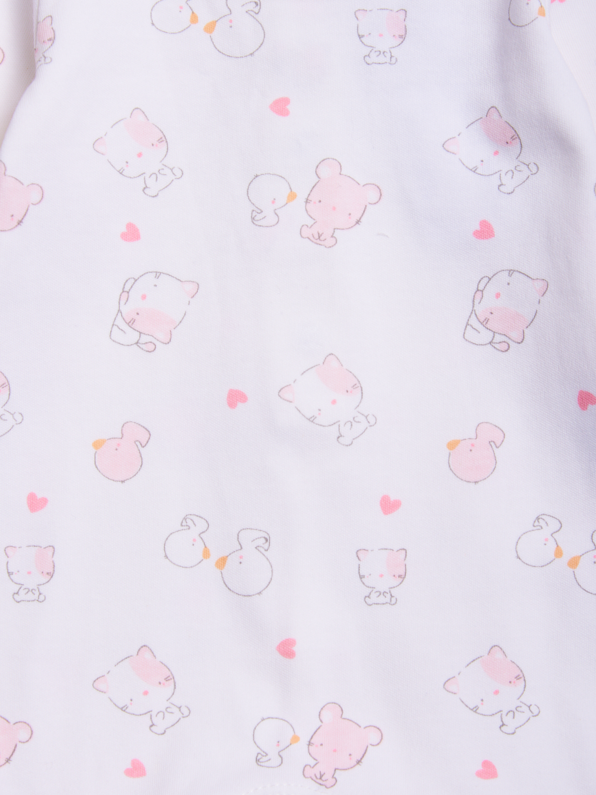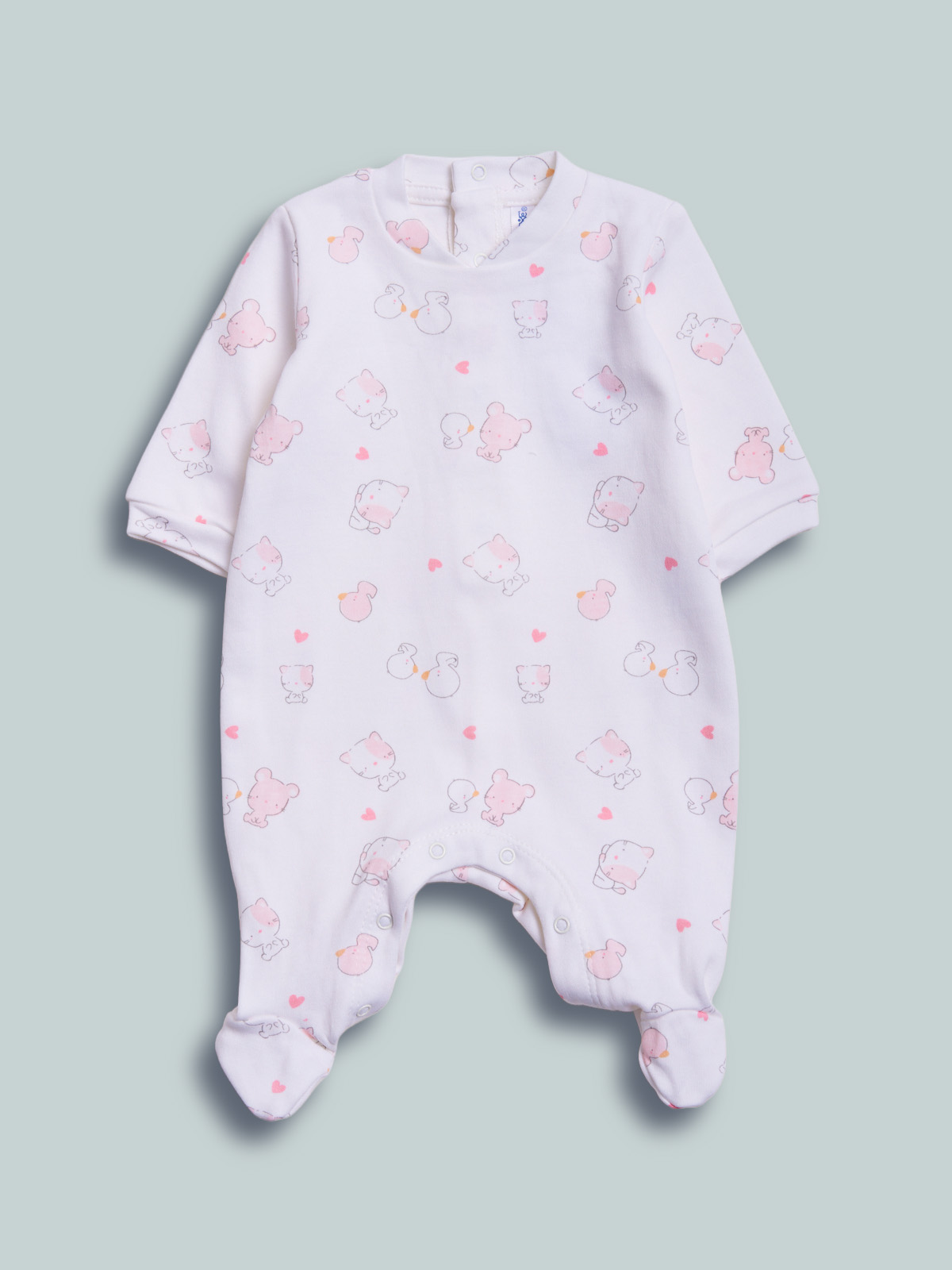 Tutina caldo cotone stampata fantasia riproposta su altri altricoli della collezione. Pratica apertura sul dietro ed entrogambe con bottoni a pressione per rendere più facile l’indosso. Pigiamino perfetto per lo stile di tutti i giorni!