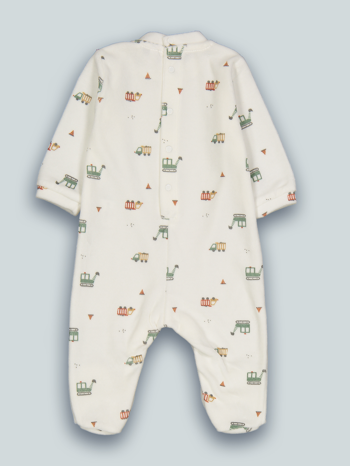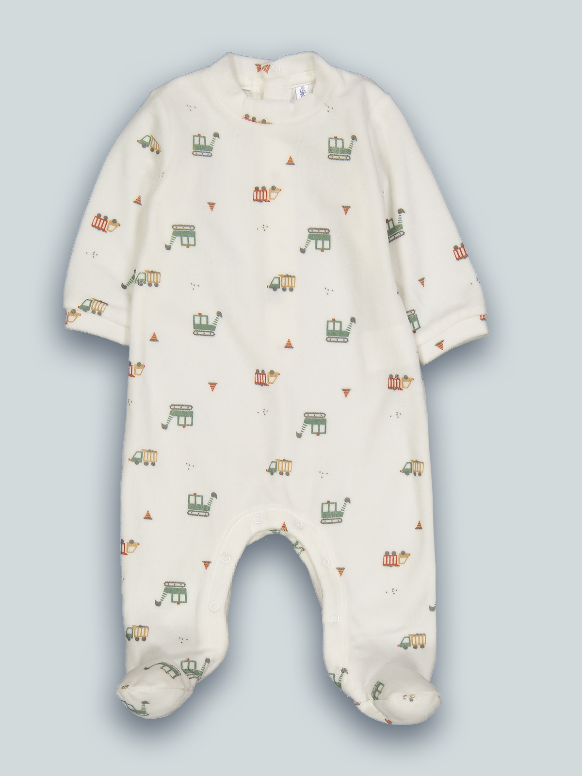 Tutina a maniche lunghe in ciniglia stampata fantasia. La vestibilità è morbida e pratica grazie a bottoni a pressione sul retro e sul cavallo. Questo pigiama fa parte del corredino composto da tutti gli articoli indispensabili per il tuo neonato.