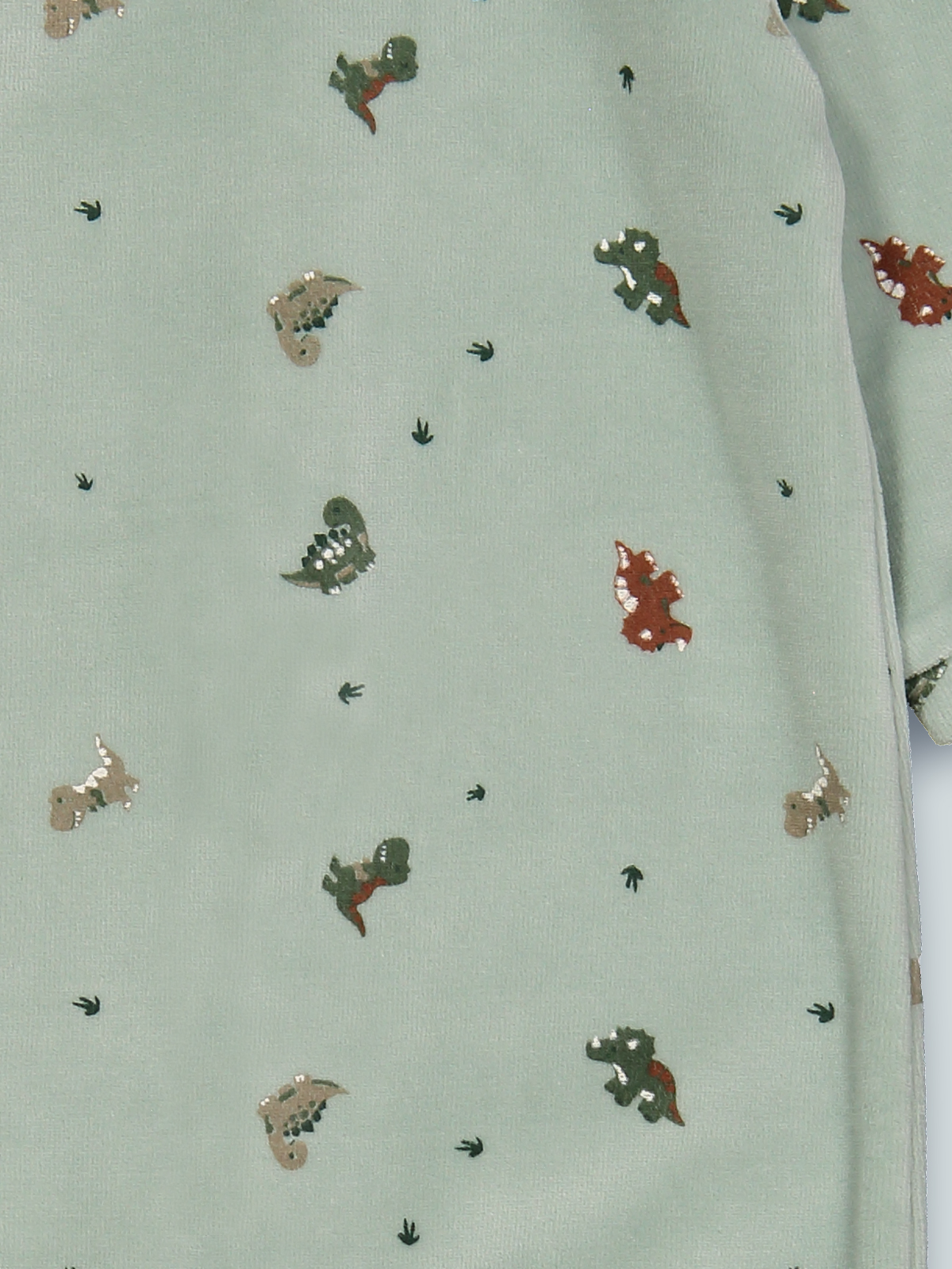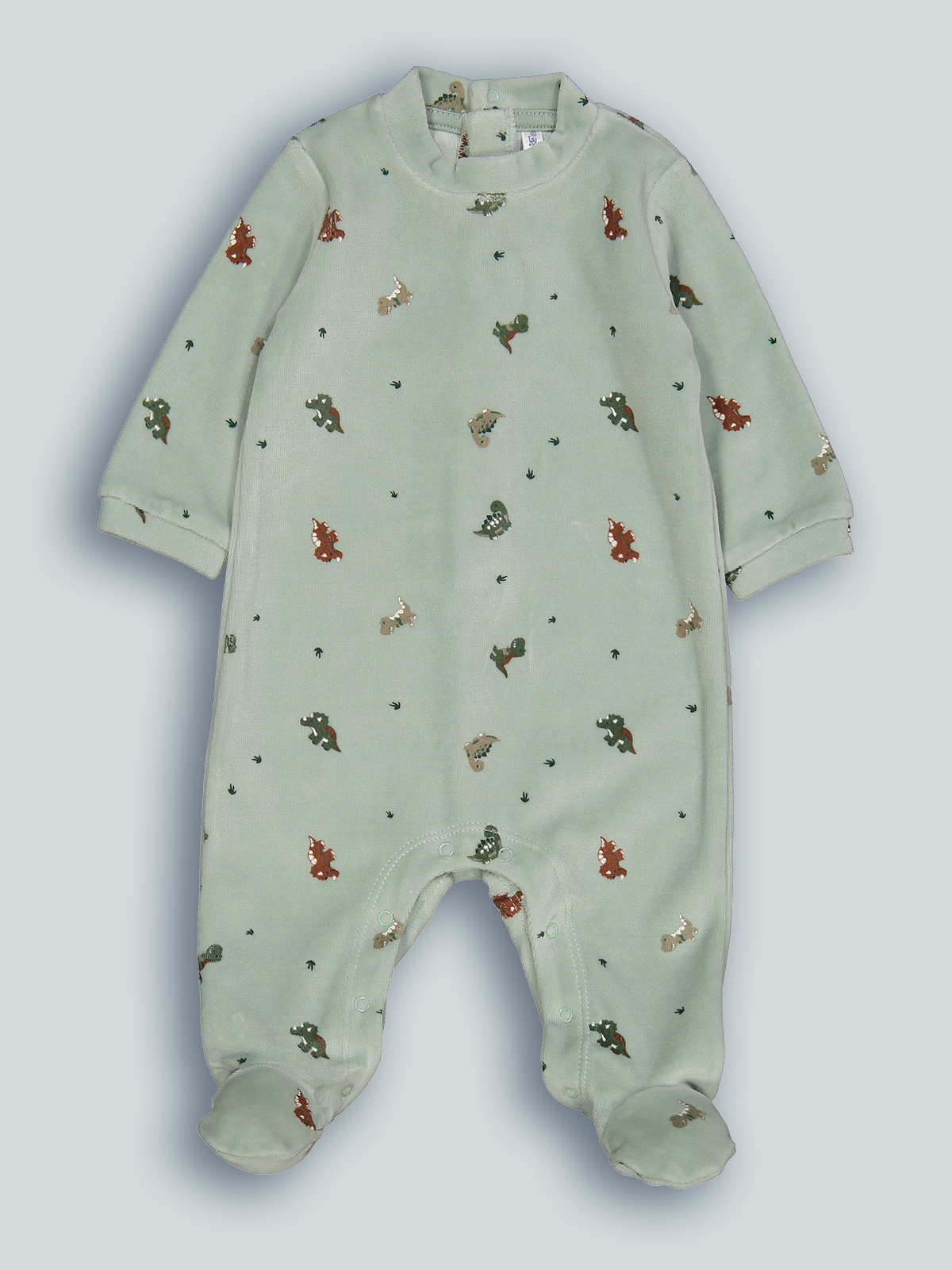 Tutina a maniche lunghe in ciniglia stampata fantasia. La vestibilità è morbida e pratica grazie a bottoni a pressione sul retro e sul cavallo. Questo pigiama fa parte del corredino composto da tutti gli articoli indispensabili per il tuo neonato.