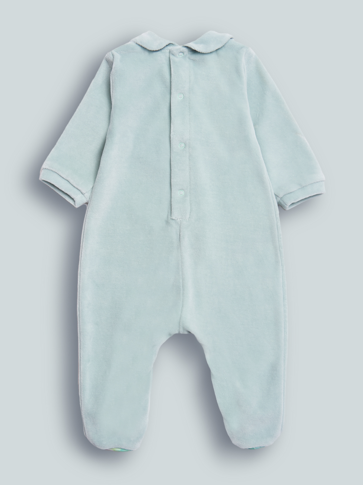 Tutina in Morbida ciniglia, arricchita da fiocco in fantasia floreale sul davanti. Pratica apertura dietro ed entrogamba con bottoncini a pressione. Disponibile in un dolce colore verde, perfetta per aggiungere un tocco di colore alle giornate autunnali.